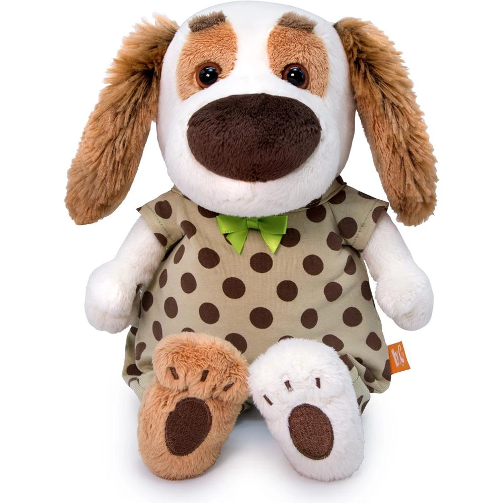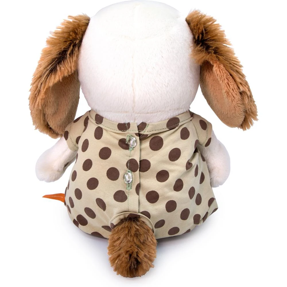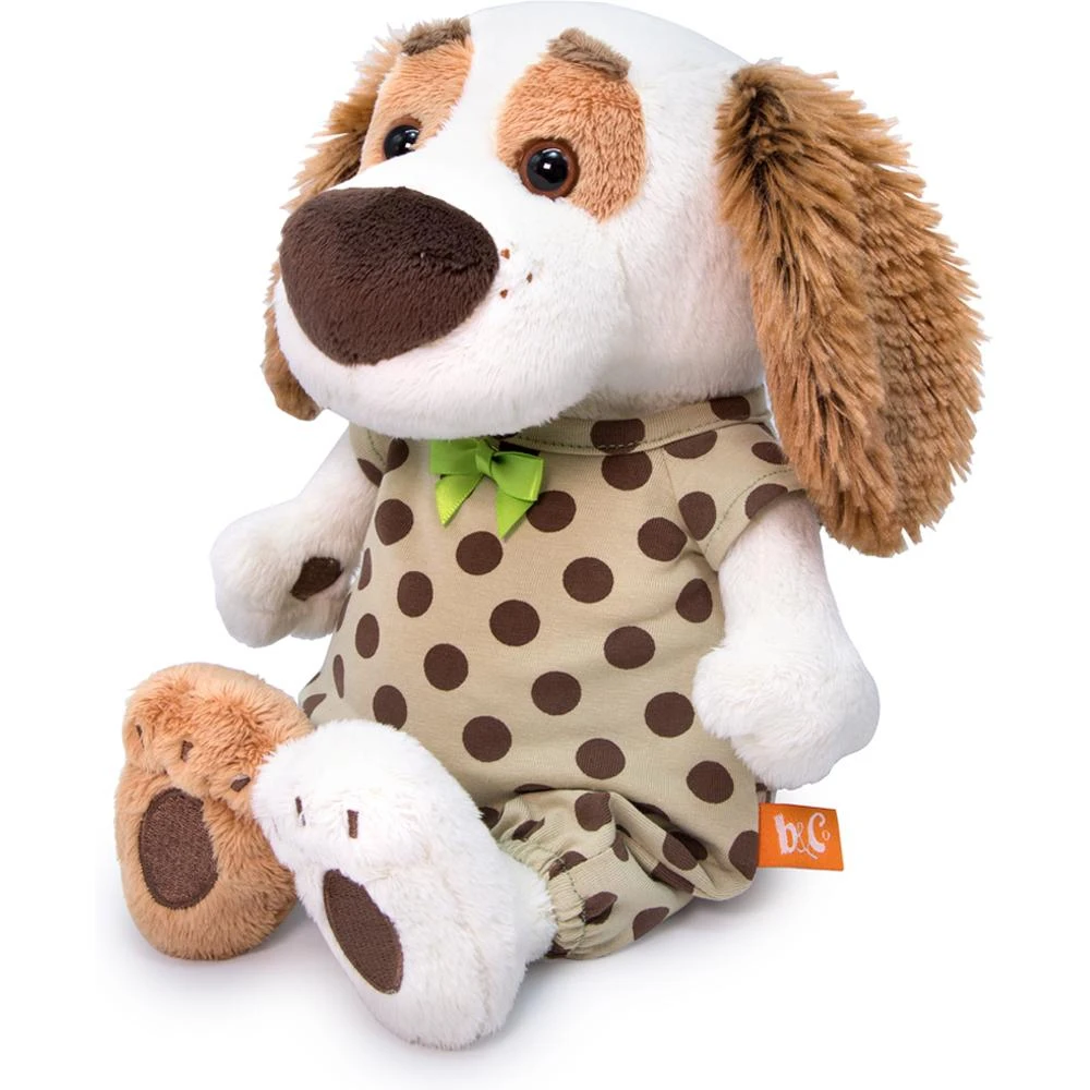 Малыш Бартоша в трогательном комбинезоне из плотного футера кремового цвета в крупный шоколадный горох.