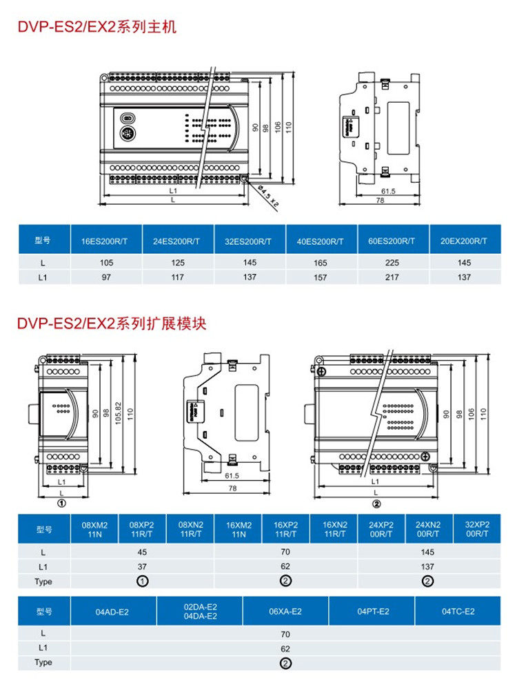 ▲ Dvp-es2 обеспечивает 16 / 20 / 24 / 32 / 40 / 60 point I / O хост для удовлетворения различных приложений