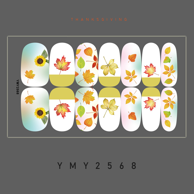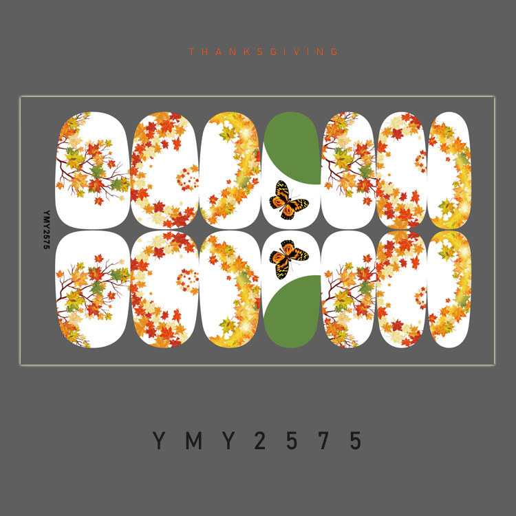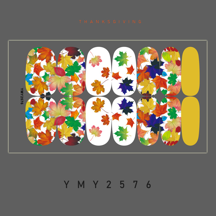 Новый День благодарения золотой кленовый лист наклейки для дизайна ногтей полное покрытие Обертывания для ногтей Осенняя наклейка сделай сам украшение для склеивания