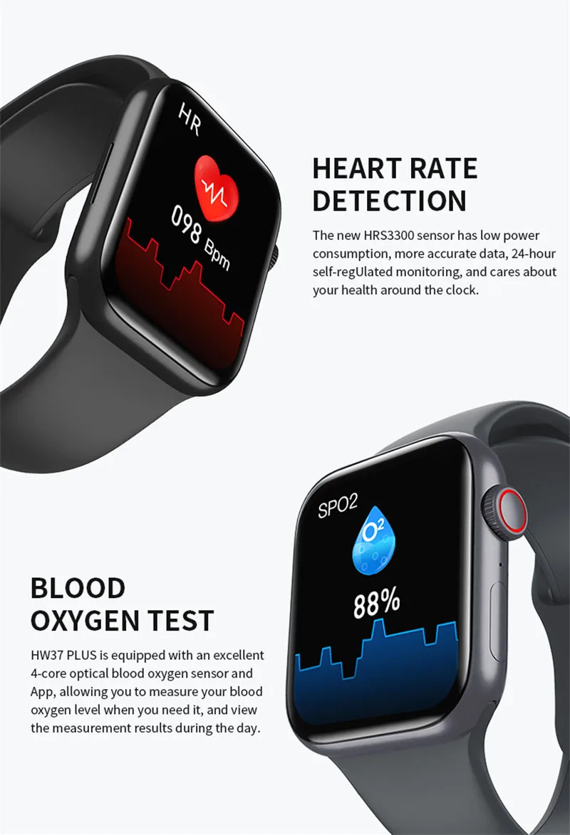 HW37 Plus оснащен превосходный 4-ядерный оптический крови oxxygen датчик и приложение, позволяет измерить вашу оксиметр уровня в тех случаях, когда вам это нужно, и просматривать результаты измерений в течение дня.