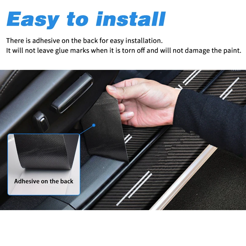 5. Характеристики: поглощает удары и предотвращает появление царапин. Может покрывать существующие царапины, придавая вашему автомобилю особый стиль. Может эффективно защитить край наружной порога пластины, чтобы предотвратить трение царапин lnstallation очень легко. На спине есть клей. Когда вы устанавливаете наклейку (Вы можете посыпать немного воды на заднюю часть наклейки, тогда вы можете свободно перемещать наклейки, чтобы избежать его достижения неправильного положения)