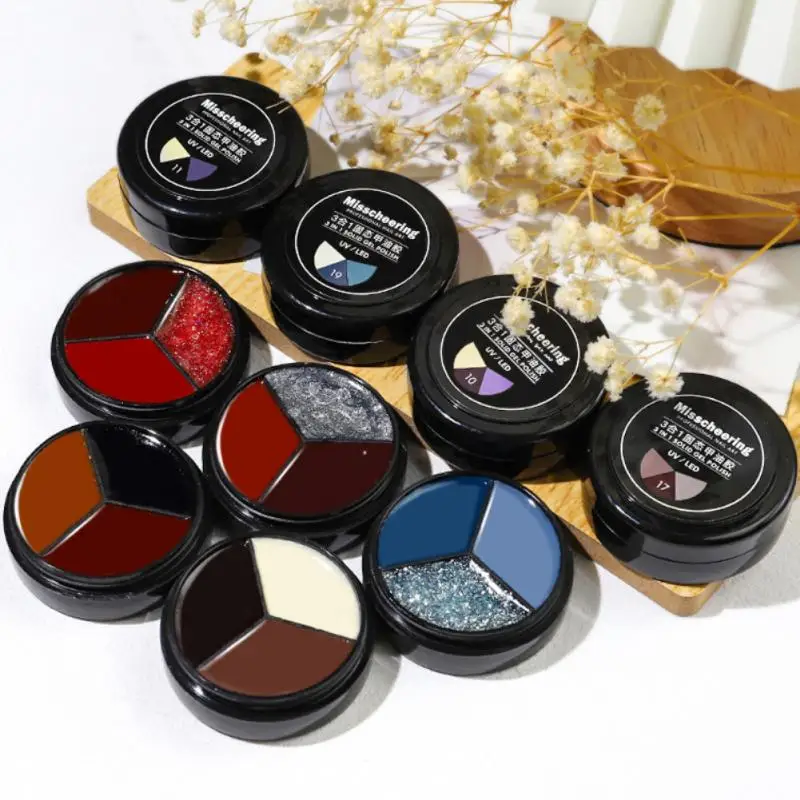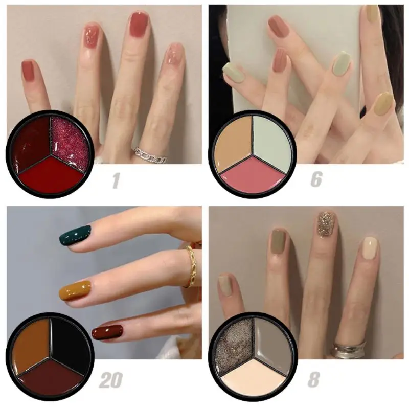 Один из трех цветов, перевернутый вверх дном, без клея, легко носить с собой, не легко смешивать цвета, в основном может удовлетворить ваши потребности в цветах ногтей.