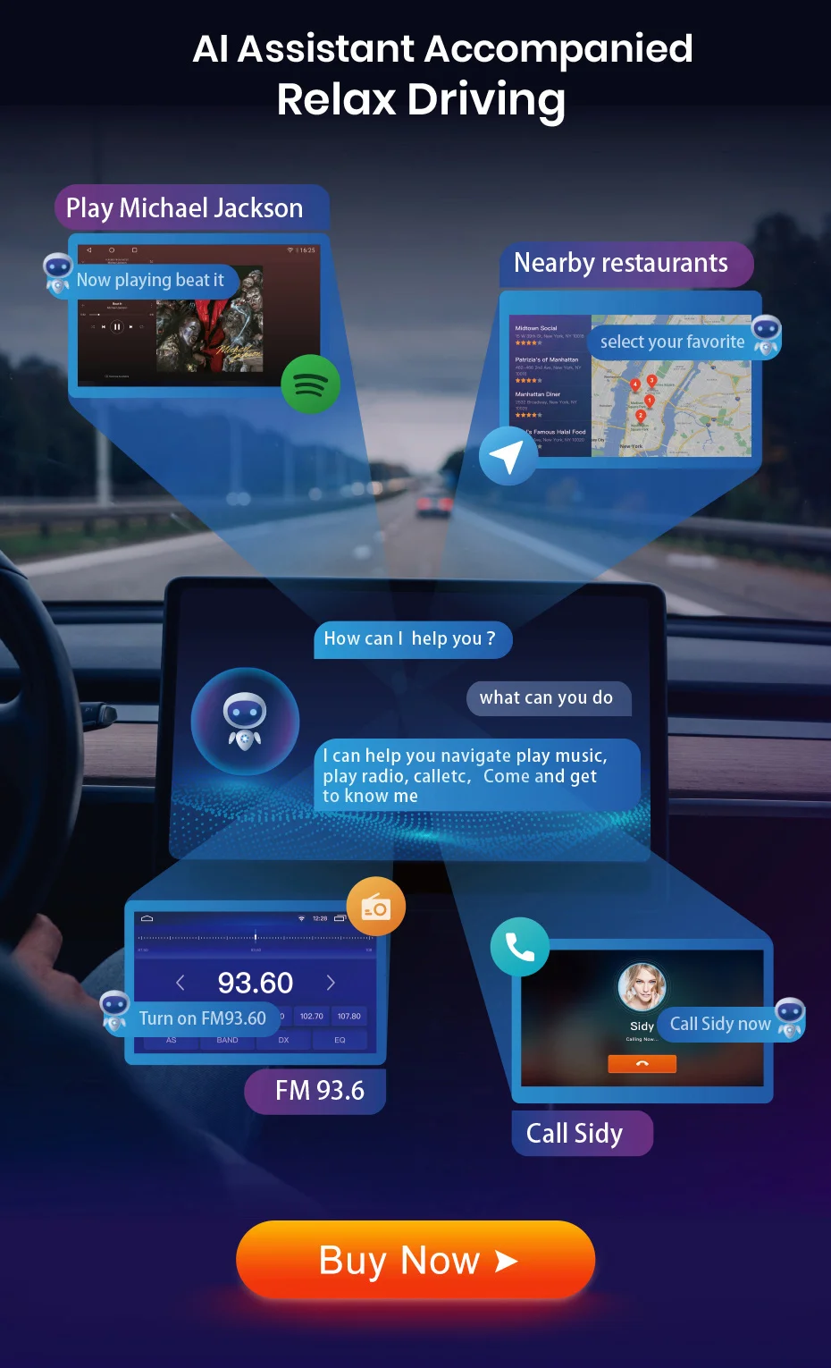 Вы можете управлять автомобильным радио, говоря несколько слов, это поймет ваш смысл и осуществит его. Эта функция является необязательной и управляется предварительно установленным приложением, вам нужно купить функцию, чтобы использовать ее. Нажмите на картинку ниже, чтобы купить.