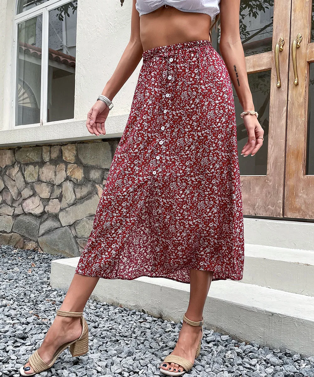 Юбка Женская длинная в стиле бохо с оборками и поясом на резинке |