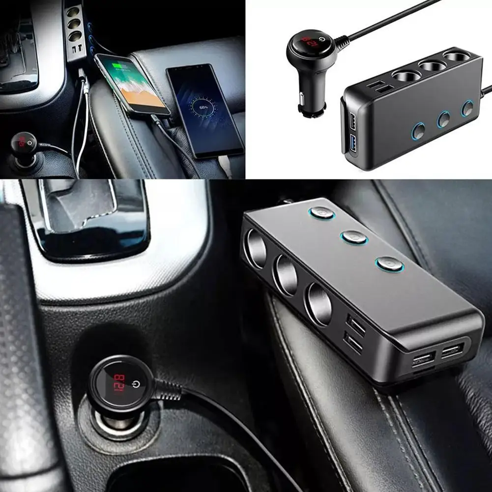 2. 7-в-1 прикуривателя адаптер Оснащен 4-х Портовое USB зарядки и 3 прикуривателя розетки, обеспечивая в общей сложности 8.5A и 120 Вт. Встроенная технология smart IC обнаруживает все подключенные устройства и обеспечивает оптимальную скорость зарядки. Быстро заряжать 4 устройства одновременно в вашем транспортного средства с напряжением питания 12В/24В