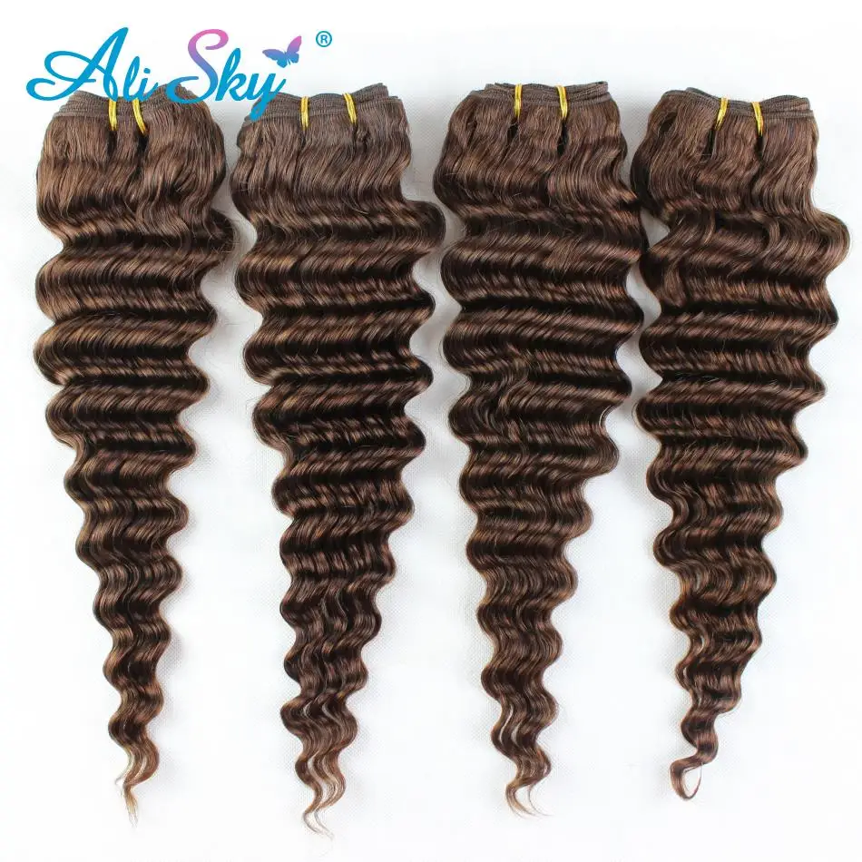 Светильник коричневый бразильская глубокая волна человеческих волос пряди #4 цвета 8-22 дюймов наращивание натуральных волос локоны 1/3/4 пряди сделка ткань из мягкой