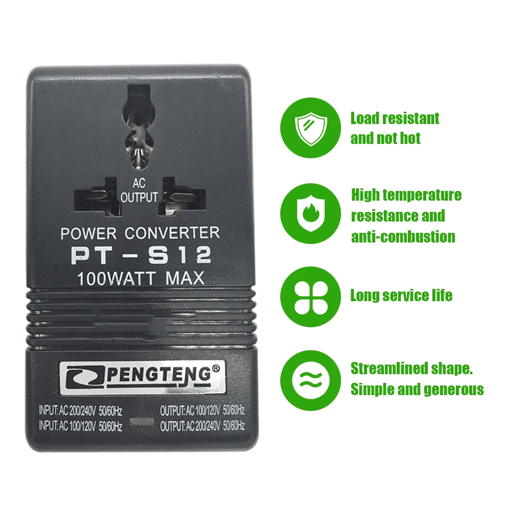 * 1. В основном используется для преобразования напряжения в разных странах. Двухсторонний преобразователь напряжения осуществляет преобразование 110/120V постоянного тока до 220/240V и задним ходом, чтобы удовлетворить использование различных низкая мощность приборов.