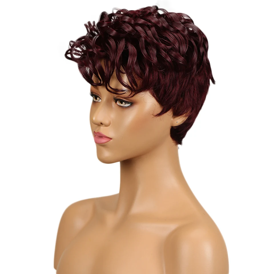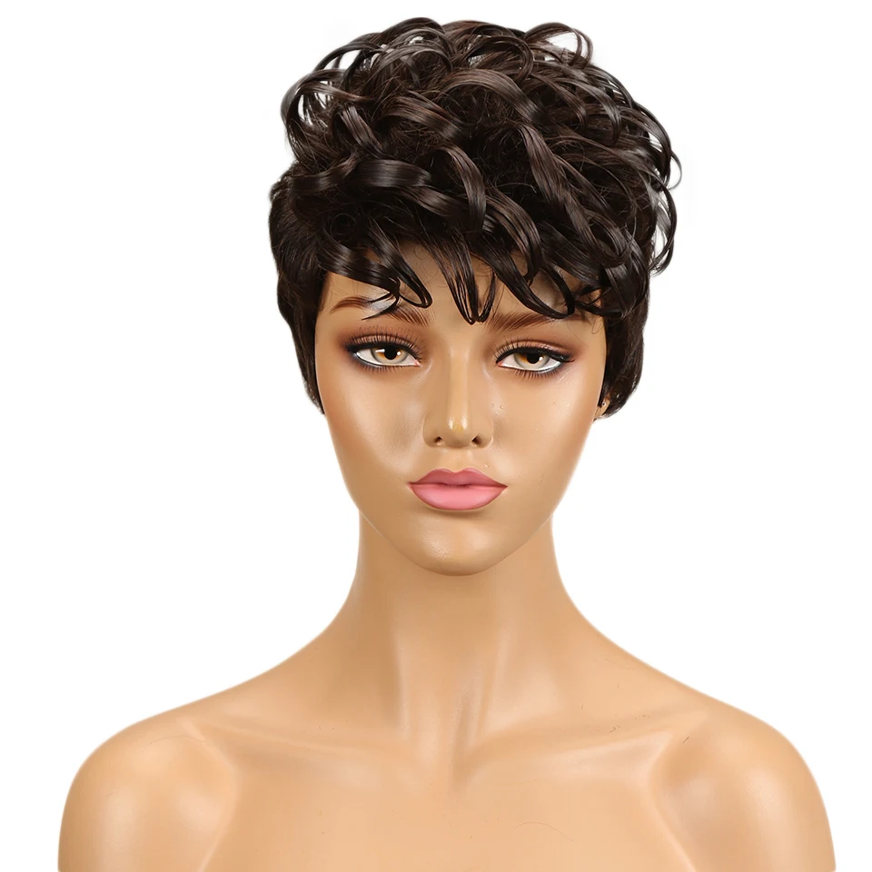 Кудрявые парик с головной повязкой человеческие волосы s бесклеевые короткий