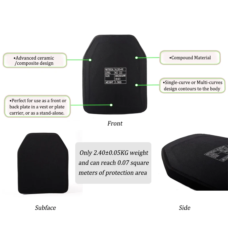Уровень 3 NIJ III керамическая пластина: 18 мм 1,7 кг (help), 1,92 кг (single) 250 мм * 300 мм * 18 мм