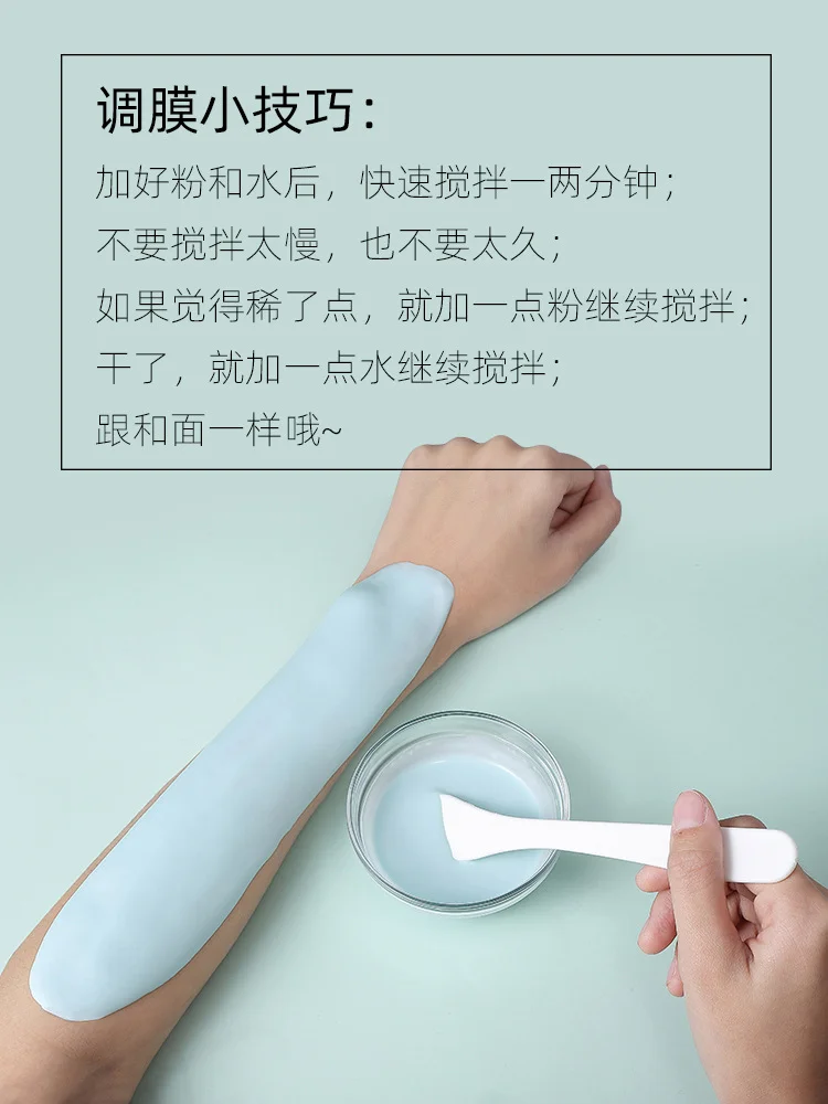 Как использовать: Возьмите соответствующее количество мягкого порошок для маски-пленки и поместите его в миску с регулировкой пленки, добавьте чистую воду и быстро перемешайте в пасту.