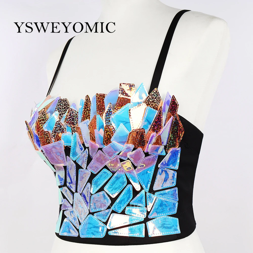 2022 летние сексуальные блестящие пайетки женский камзол укороченная обувь для ночного клуба вечерние показать Корсет Топ изнашиваться, пуш-ап, бюстгальтер-бюстье