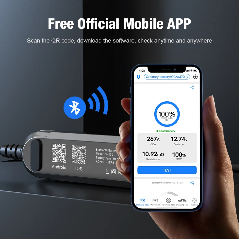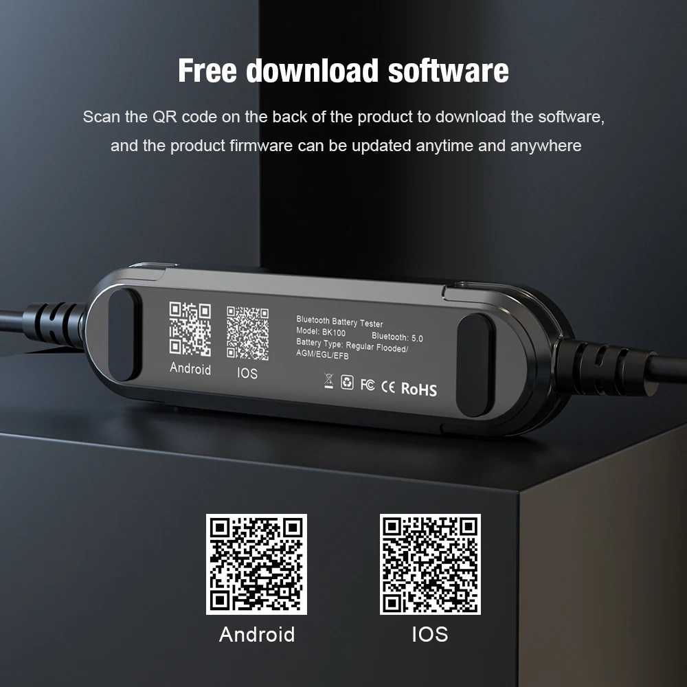 2.[удобство]: вы можете отсканировать qr-код продукта, чтобы загрузить программное обеспечение на вашем IOS, Android, iPad. BK100 только легкий, всего 100 г. Проверьте данные аккумулятора в любое время и в любом месте. Это так просто!