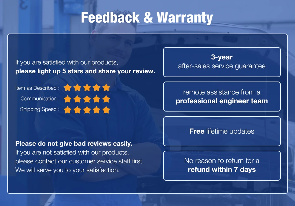 1 год гарантии послепродажного обслуживания, удаленная помощь от профессиональной инженерной команды. Бесплатные пожизненные обновления. Нет причин для возврата денег в течение 7 дней