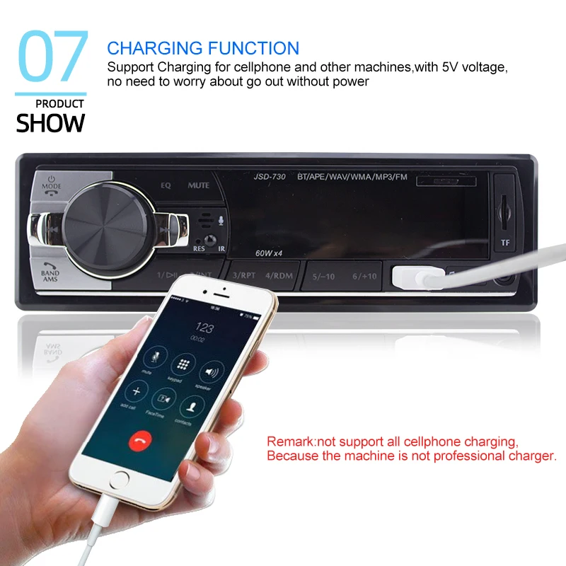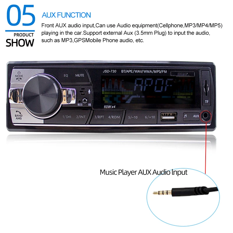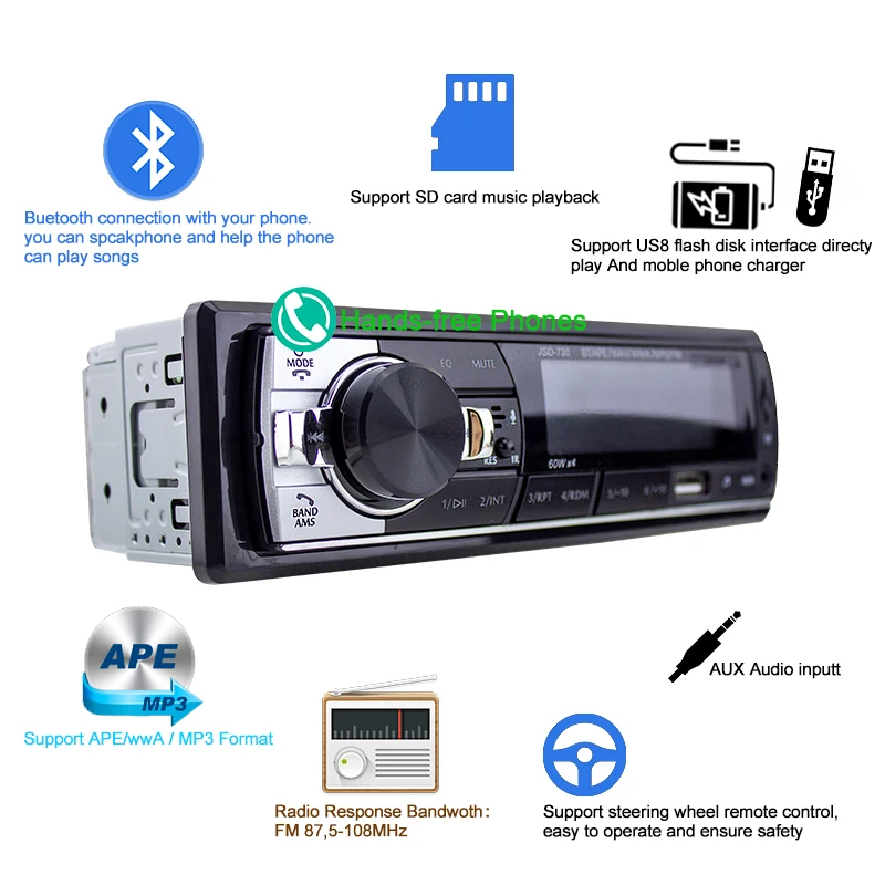Support three-band radio store FM1-FM2-FM3, and can preset 18 radio stations. (Radio frequency: 87.5-108MHz).