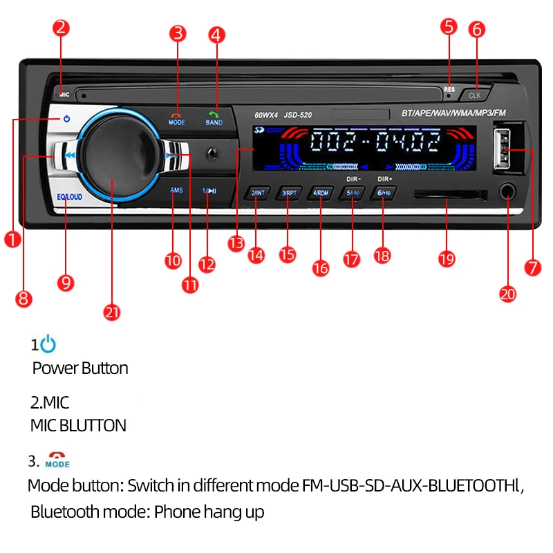 ❀ Support three-band radio store FM1-FM2-FM3, and can preset 18 radio stations. (Radio frequency: 87.5-108MHz).