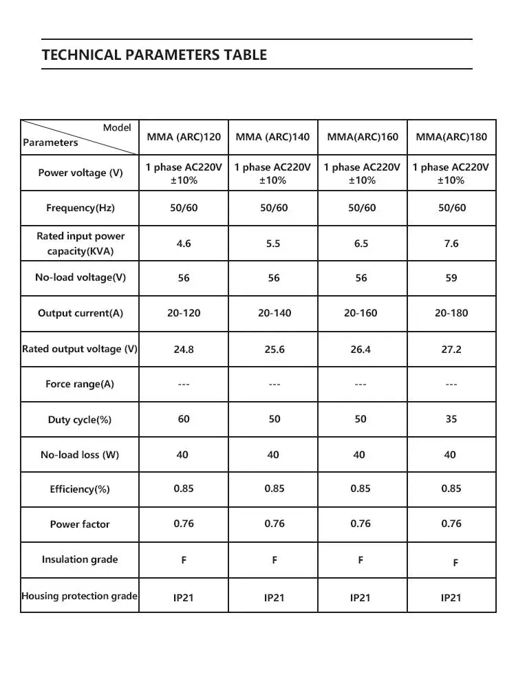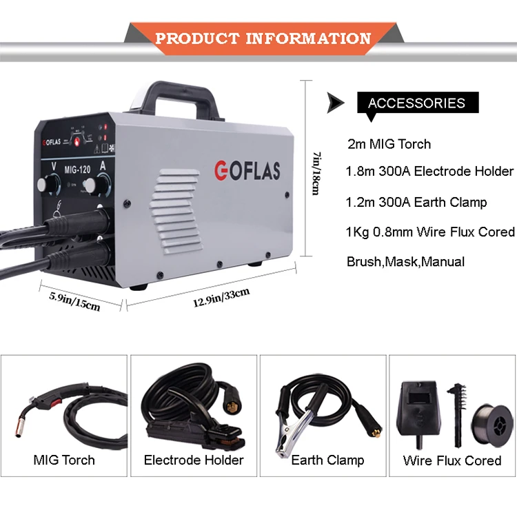 【Передовые технологии IGBTНаша MIG-120 использует самые передовые технологии IGBT инвертора с отличной дуговой стабильностью. Подходит для сварки углеродистой стали, железа, нержавеющей стали и других металлов.