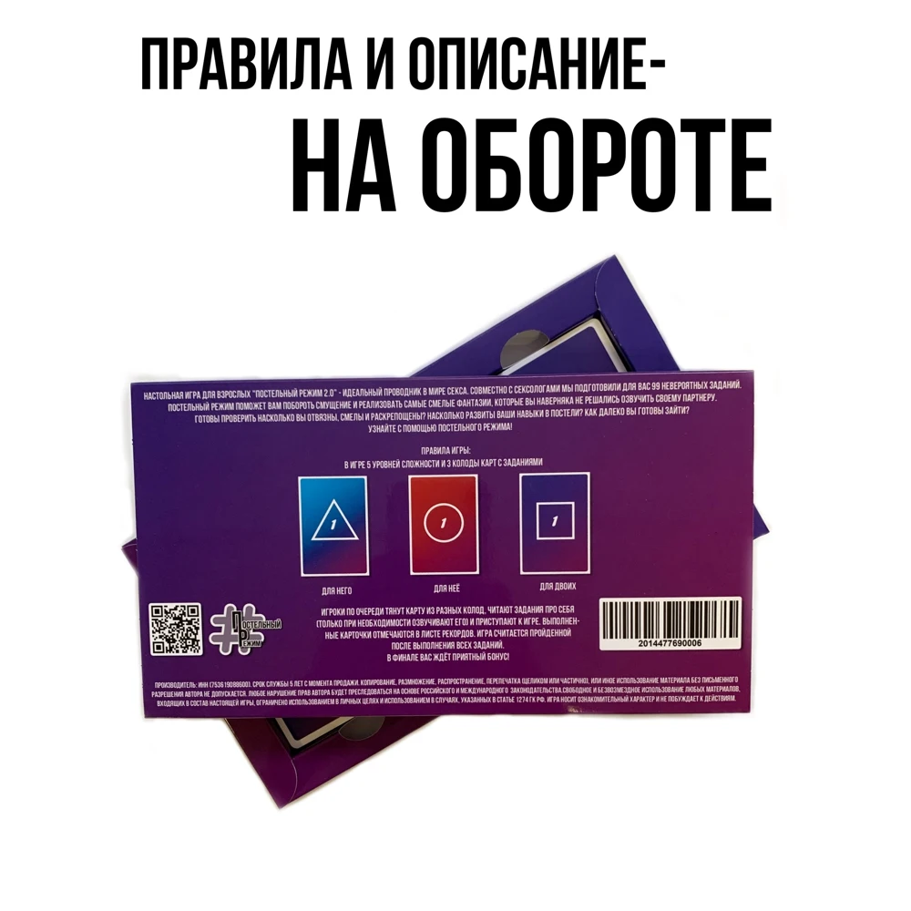 Аннотация | Настольная игра для взрослых "Постельный режим 2.0" - идеальный проводник в мире секса. Совместно с сексологами мы подготовили для Вас 99 невероятных заданий, а так же абонемент на самые приятные ощущения😍 |