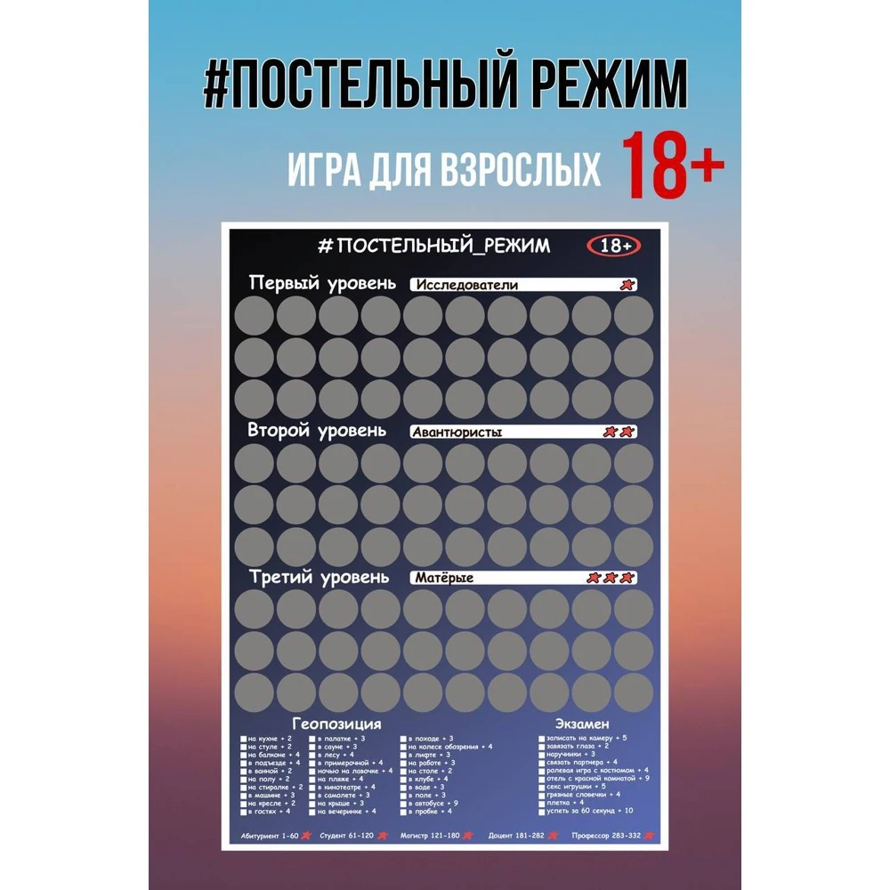 Аннотация | Идеальный планировщик и дневник ваших сексуальных приключений - это скретч-плакат «Постельный̆ режим»! С ним вы точно раскрепоститесь, узнаете предпочтения партнера и насладитесь массой новых пикантных ощущений.