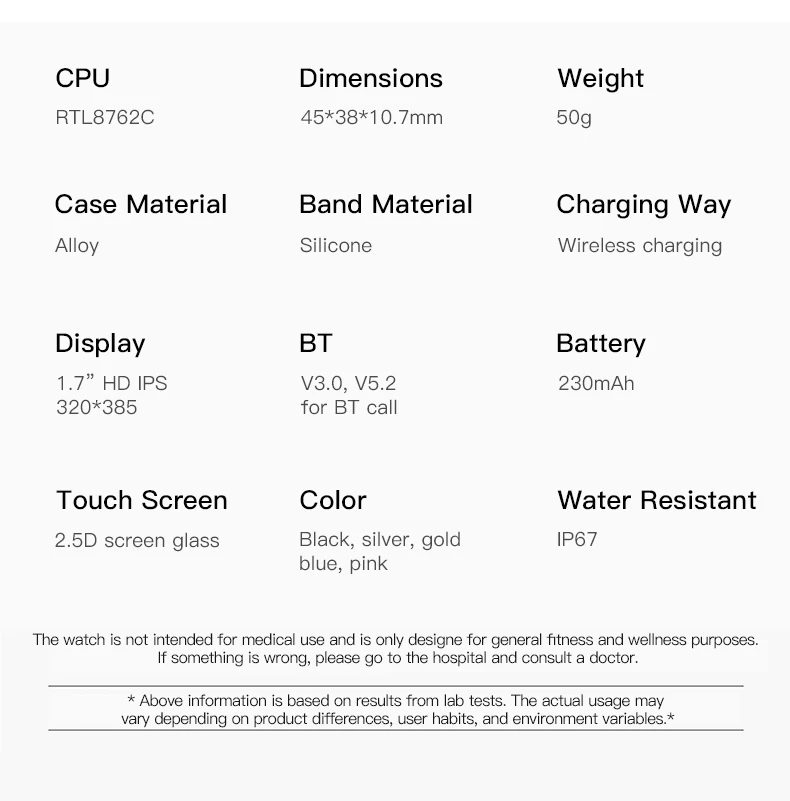 1. Принцип измерения умных часов полностью отличается от принципа измерения медицинского оборудования. Это только для занятий спортом и фитнесом, спасибо.
