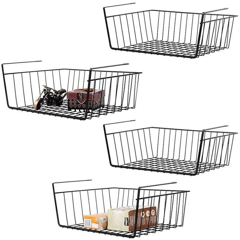 Акция! Набор из 4 корзин для хранения под полкой, подвесной из металлической проволоки полки для хранения настольных кухонных шкафов для хранения