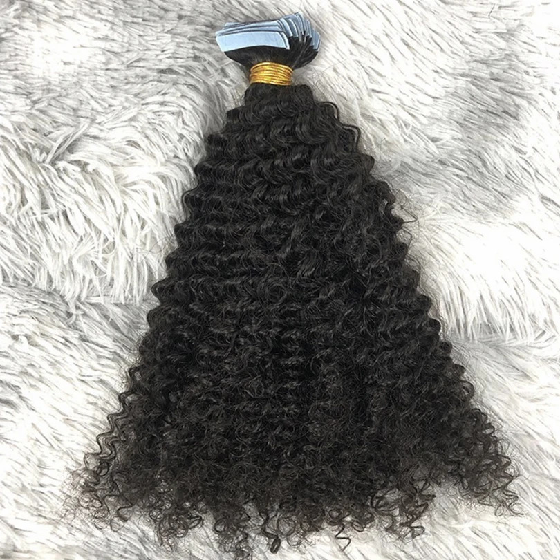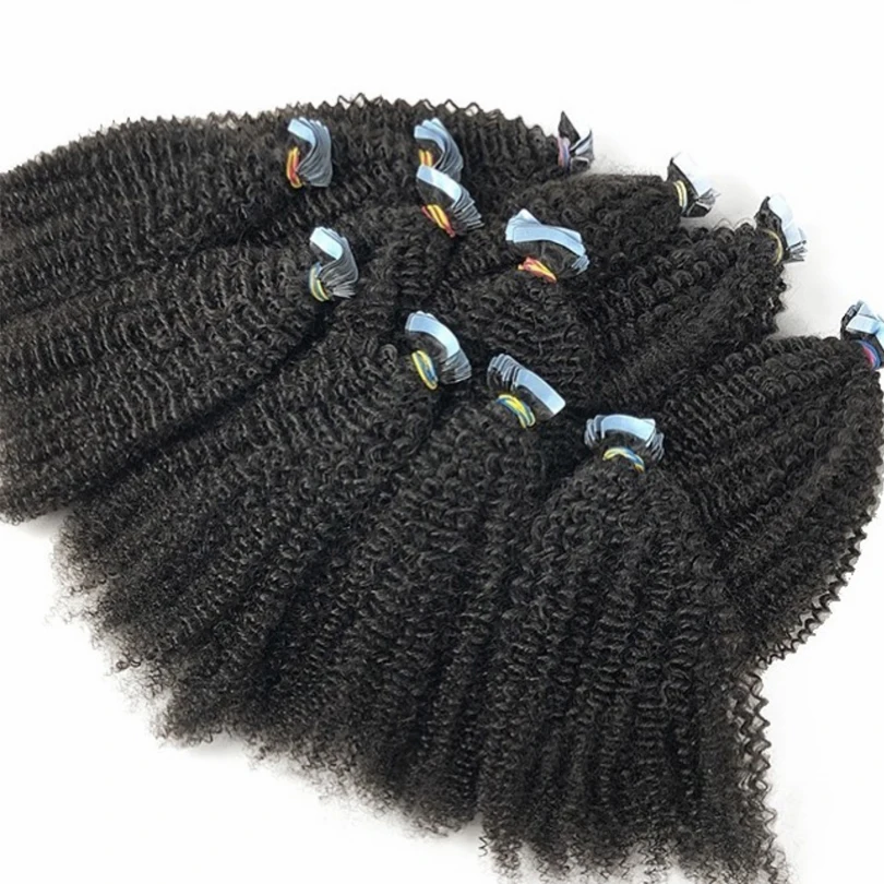 30 дюймов афро кудрявые ленты для наращивания человеческих волос для наращивания кожи уток невидимые монгольские натуральные черные волосы для наращивания 3B 3C