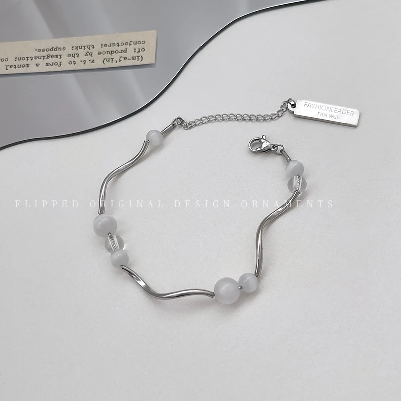 Материал: титановая стальная цепь, опал, стеклянные бусины,