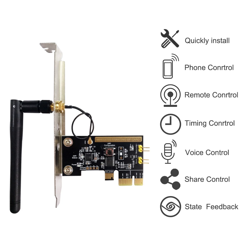 2,4 Ghz антенна Wi-Fi: этот настольный ПК дистанционный пульт модуль автоматического включения света может легко подключаться к сети Wi-Fi, и имеет устойчивое соединение.