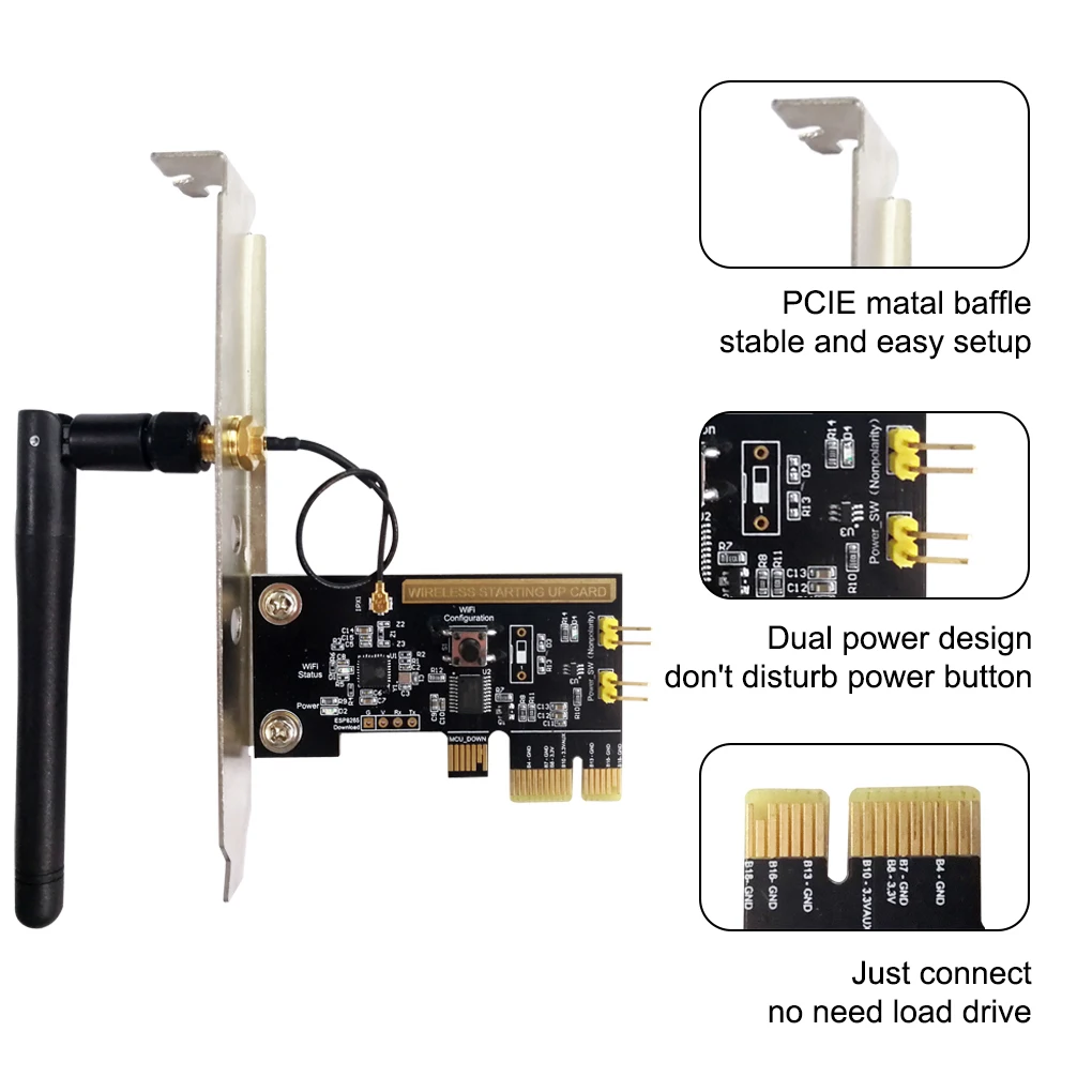 Простота установки: с интерфейсом PCI-E эта беспроводная смарт-карта для компьютера легко подключается и не требует драйверов.