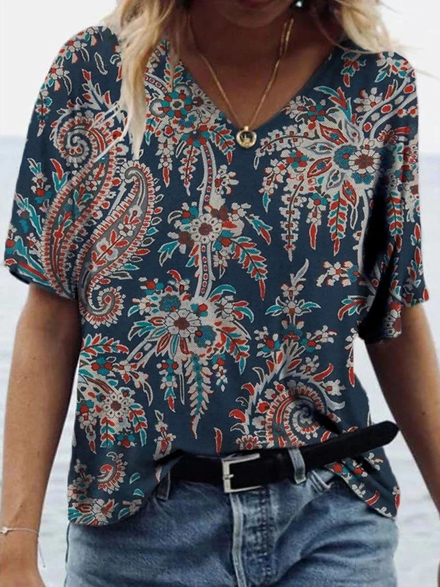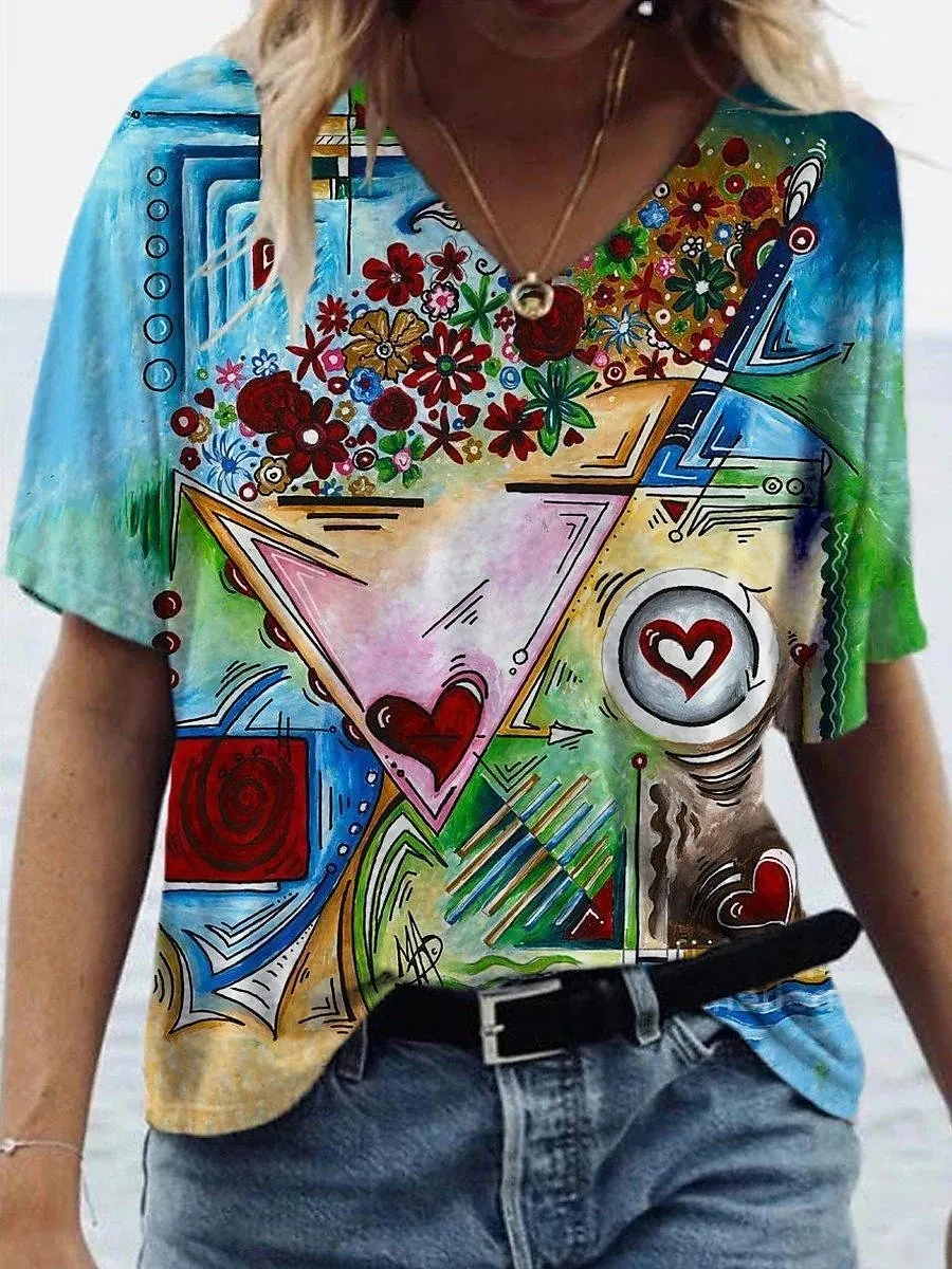 Лето 2022 Женская футболка галактика v-образным Вырезом Базовый Топ Синий/3D печать короткий рукав Футболка женская Повседневная мода пуловер Топ