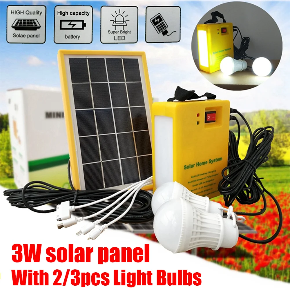 Комплект домашней системы генератора панели солнечной энергии с 2/3 шт. светодиодный светильник на солнечной батарее аварийный светильник 4 головки зарядка через USB для наружного сада