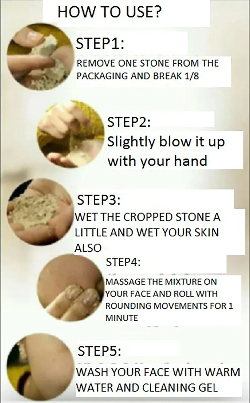 Вам нужно нанести рушью камень (Sefitab) на влажную и влажную кожу. Для влажной и влажной кожи нанесите рушур на лицо руками, а затем подождите 1 минуту. Вы должны мягко массировать и протирать рукой. Вы должны обязательно вымыть кожу, которая была очищена русуром с мылом и водой. После этих процедур кожа будет выглядеть более яркой и гладкой, и вы избавитесь от пятен и потемнения кожи.