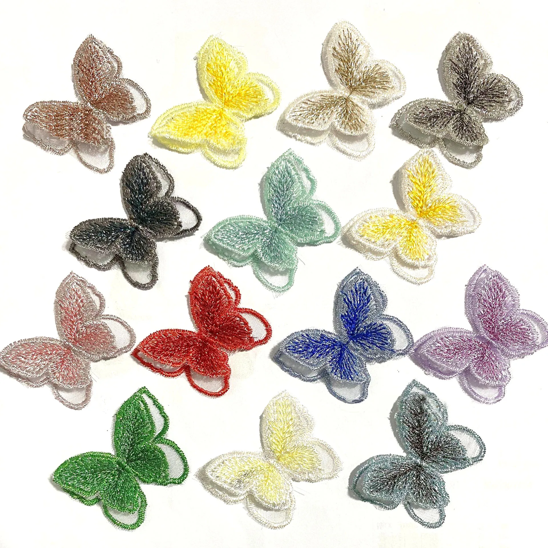 50pcs Embroidery Butterfly Appliques Double Layer 3D Lace Butterfly Patch DIY Dress Headdress Decoration Materials Supplies