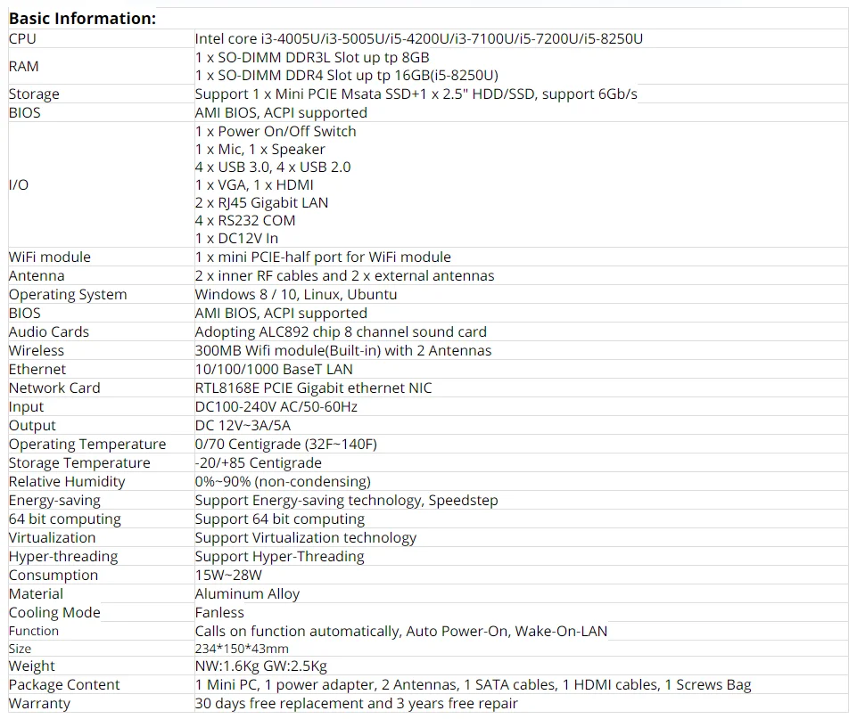 1. Посылка Barebone (без RAM, без SSD, без WF) не включает Wi-Fi и антенну, если вам нужно, пожалуйста, доплатите нам $10 по этой ссылке или свяжитесь с нами. 2. ПК лучше всего использовал Samsung, SKhynix, Micron и т. д. оригинальные фирменные аксессуары, мы не компенсируем собственную ОЗУ и жесткий диск покупателя и не компенсируем ущерб, причиненный человеком, и неисправность. 3. Если вам нужен логотип printe OEM на вашем мини-ПК, пожалуйста, отправьте нам изображение HD. 4. Перед оплатой убедитесь, что адрес доставки, почтовый индекс и номер телефона верны. 5. Все мини-ПК с поддержкой sim-карты должны приобрести дополнительные модули 3G/4G.