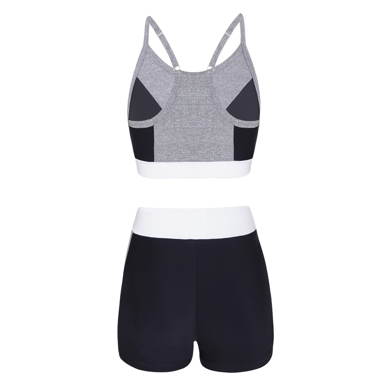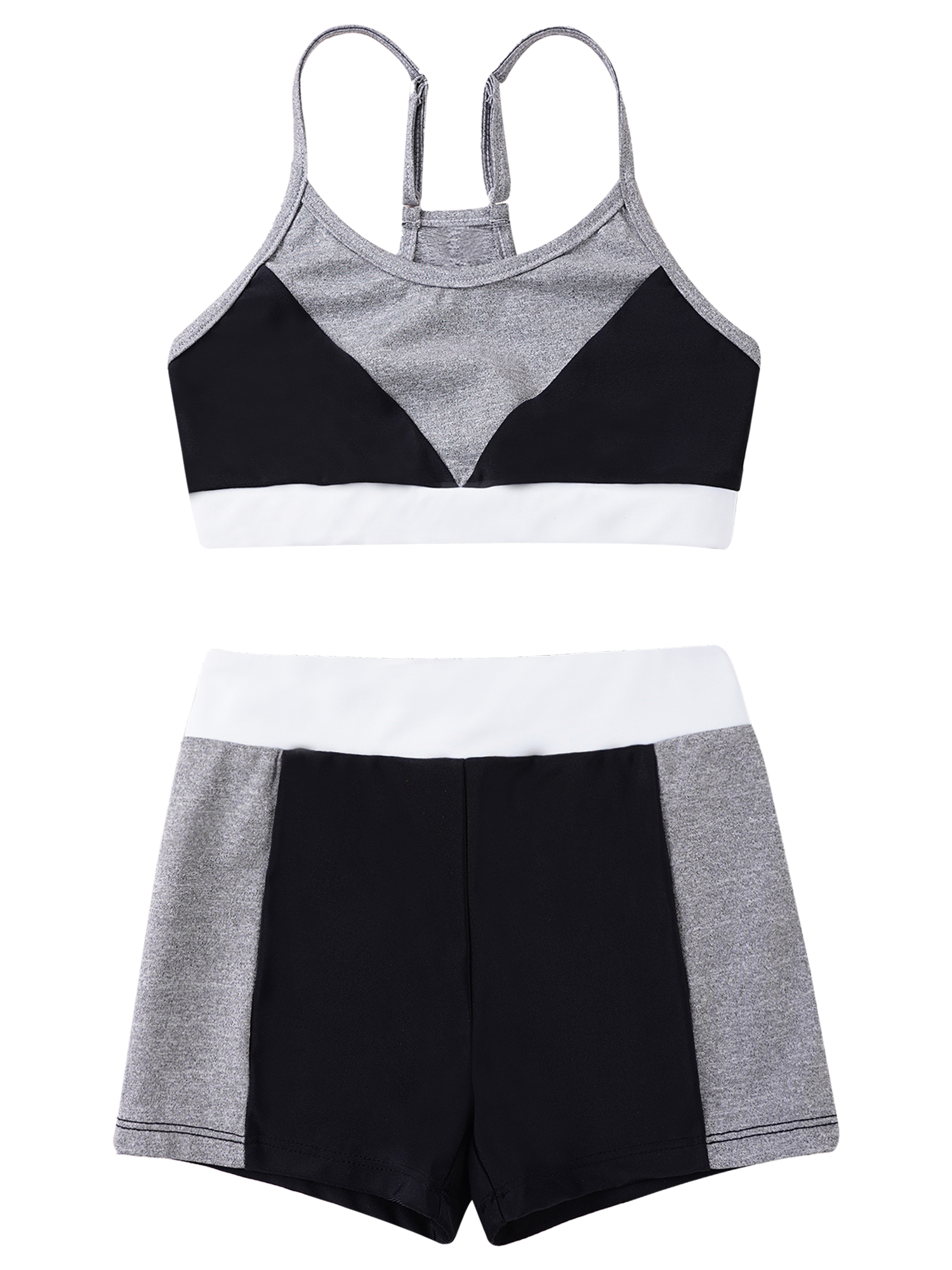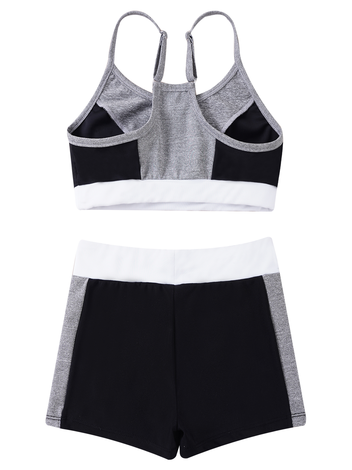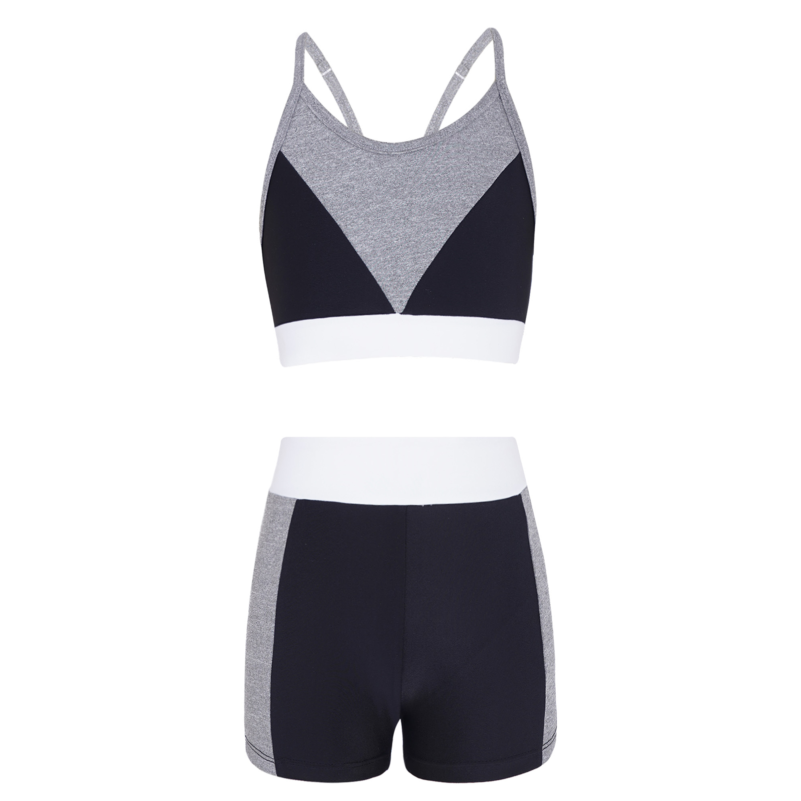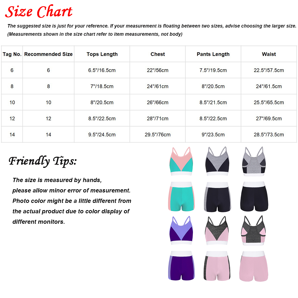 #6-14, Детский комплект для девочек с регулируемыми бретельками и цветными блоками, укороченный жилет топы и шорты для занятий гимнастикой, йогой, бегом и бегом