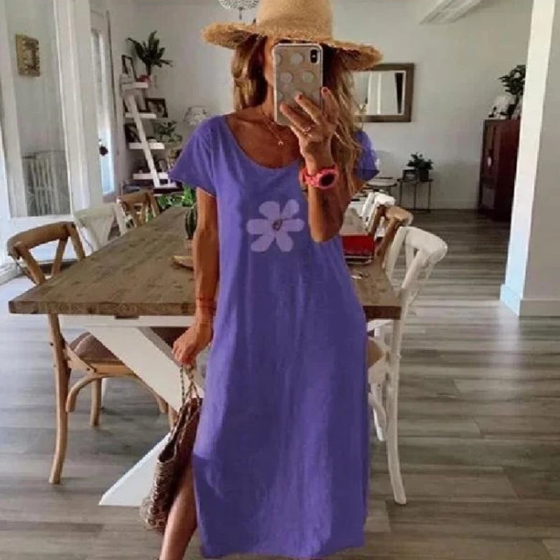 Женское платье с цветочным принтом Jastie синее хлопковое v-образным вырезом и
