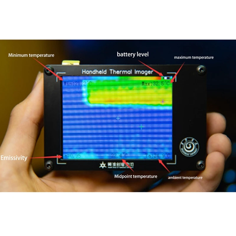 3,2-дюймовый ЖК-дисплей экран имеет разрешение 320*240, а также могут отображать один и трек самая высокая температура, тепло даже при очень низкой температуре, и центральной точки температуры.