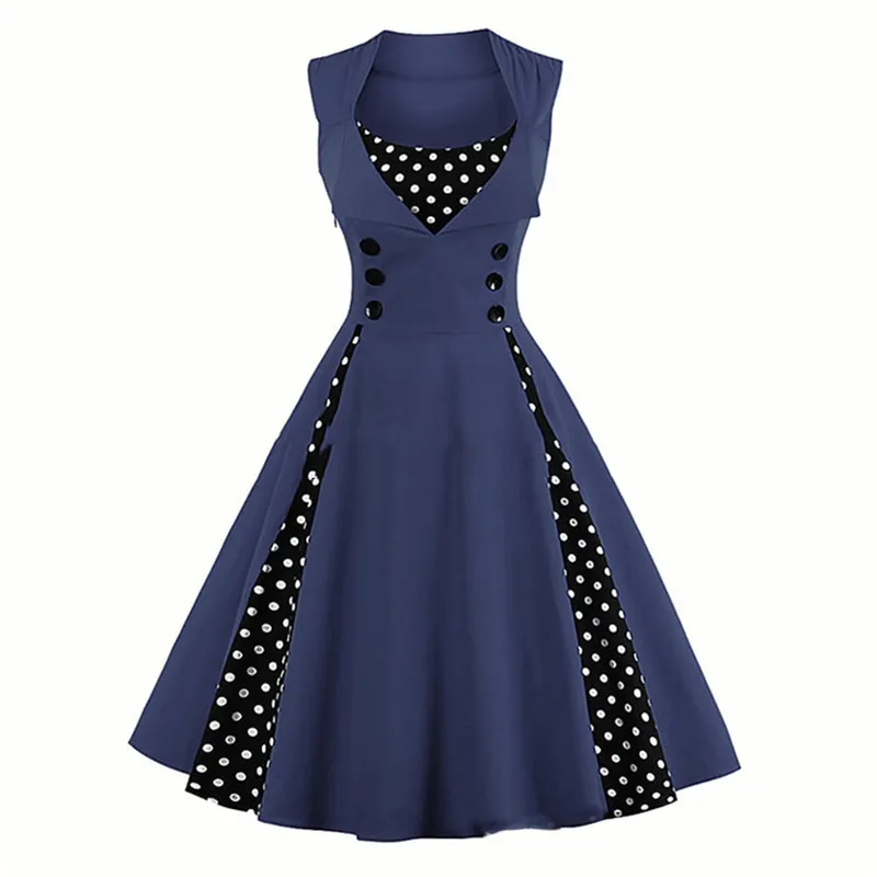 S-3XL женское винтажное платье в стиле ретро 50s 60s рокабилли, летнее праздничное платье в горошек, Элегантное повседневное платье-туника
