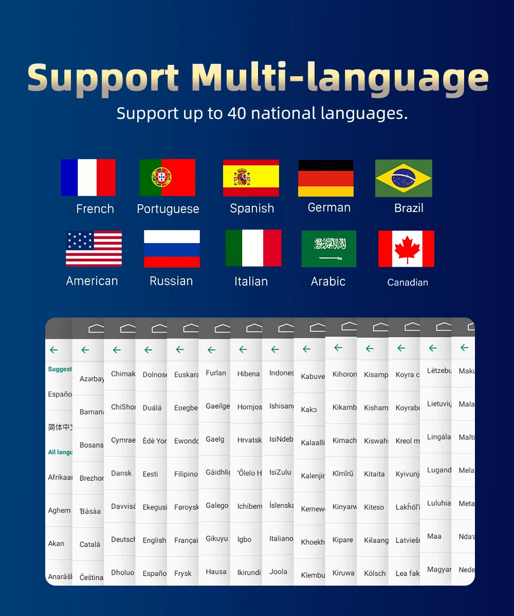 Factory setting keyword:8888Language:Chinese/English/French/Italian/Korean/Japanese/Arabic/Spanish/Portuguese/Russian/Turkish/Vietnamese/Hebrew/Polish/German
