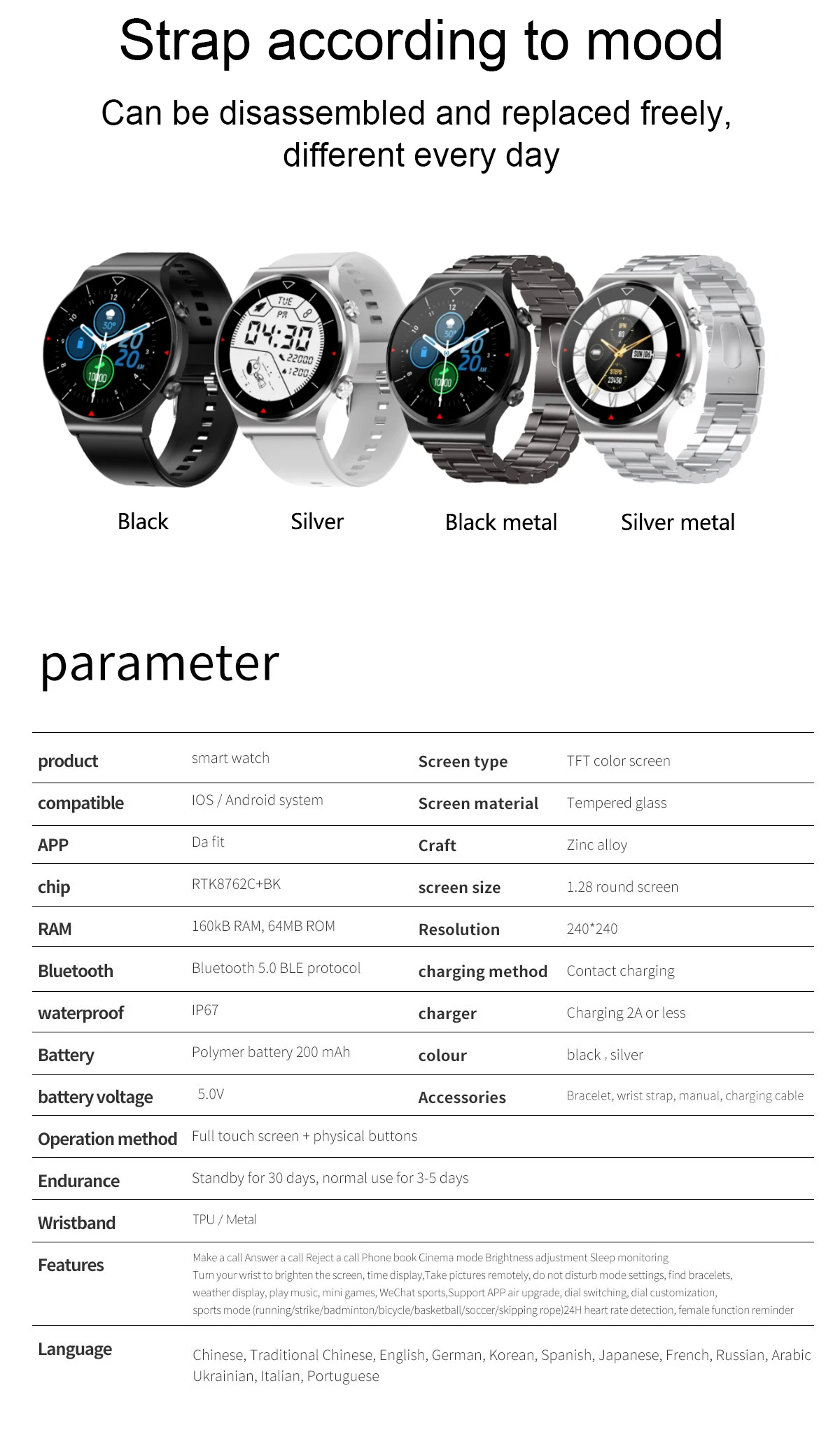 ♦Поднимите руку, чтобы осветить экран, будильник, настройки циферблата, режим театра, регулировка яркости, секундомер,"