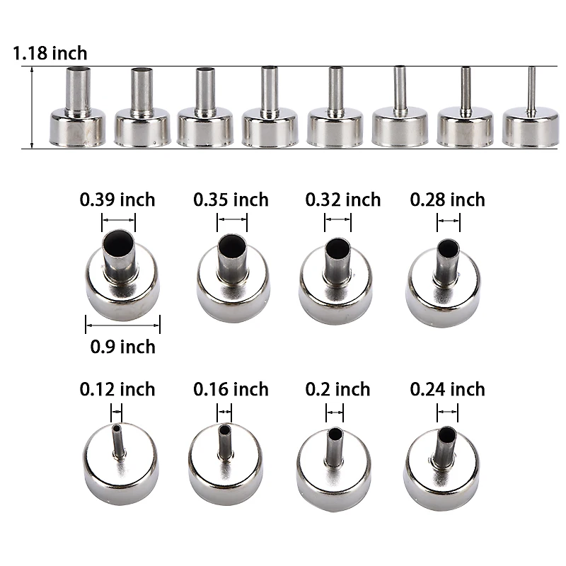 JCD 2022 Новинка 9 шт./компл. сварочное сопло для пистолета горячего воздуха из нержавеющей стали разного размера сопла для 8858 8898 858D 8908 8206 сопло