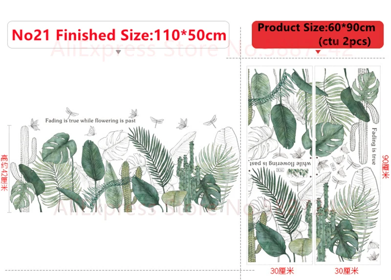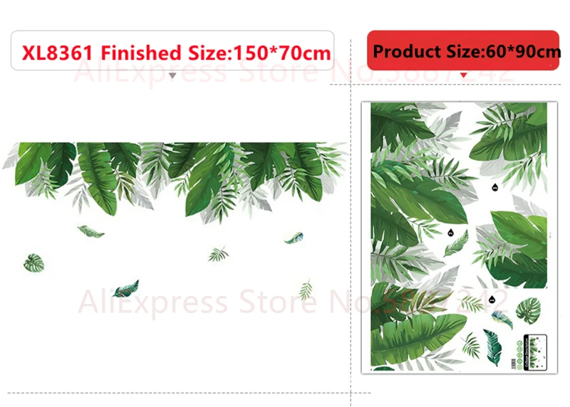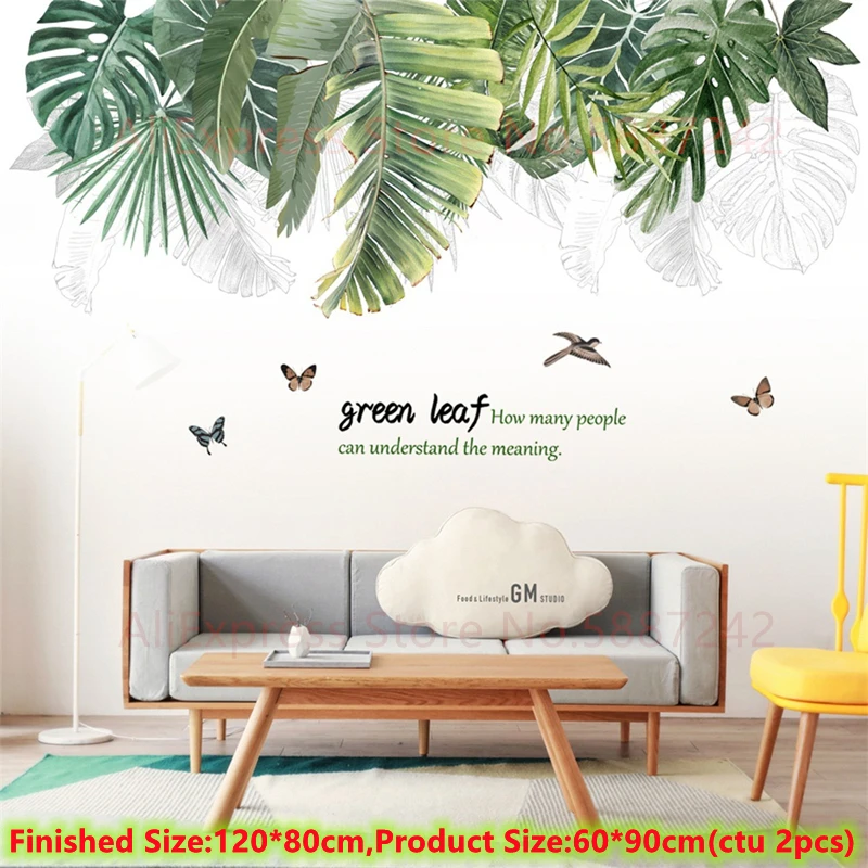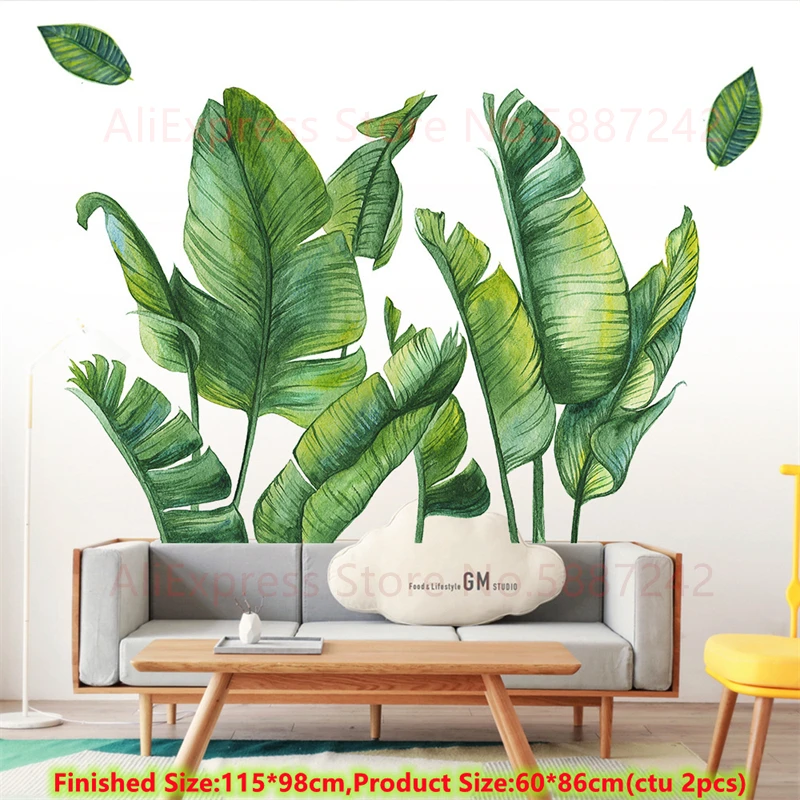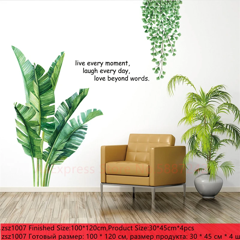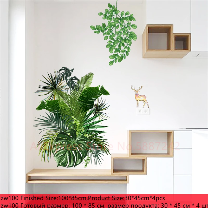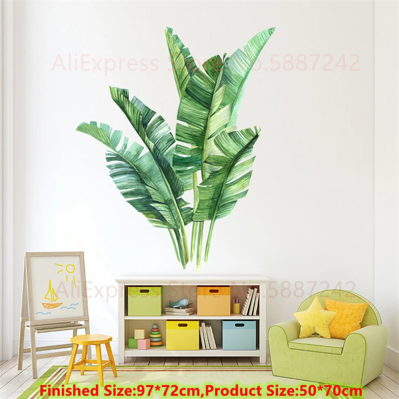 Тропические листья, джунгли, настенные наклейки для спальни, гостиной, декоративные виниловые наклейки на стену, дверь, холодильник, фрески, обои, зеленое растение, украшение для дома, диван, телевизор, мебель, украшение, съемная пленка, плакат