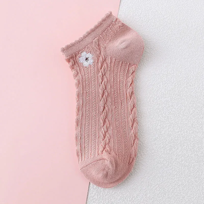 Женские милые хлопковые короткие Дышащие носки с вышитыми пчелами и цветами; Сезон весна-лето; Повседневные модные носки до щиколотки; Желтые, розовые носки-башмачки