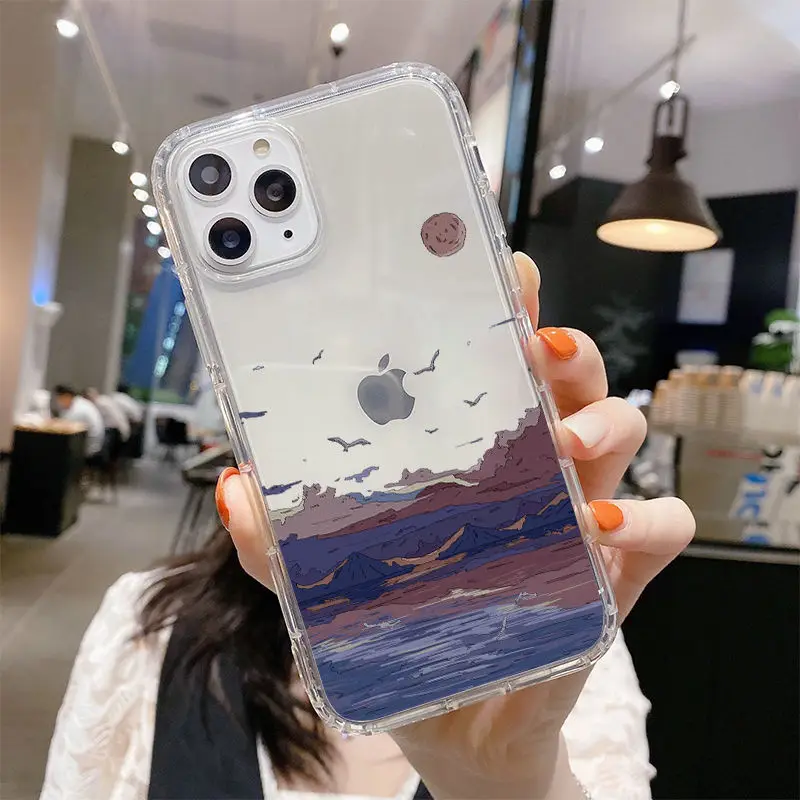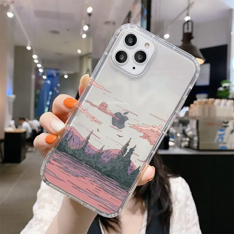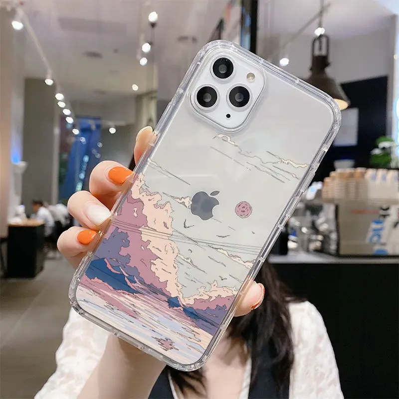 Чехол для телефона с изображением пейзажа заката в Корейском стиле для iPhone 11 13 12 Pro Max 12 13 Mini X XR XS MAX SE 2020 7 8 6s Plus