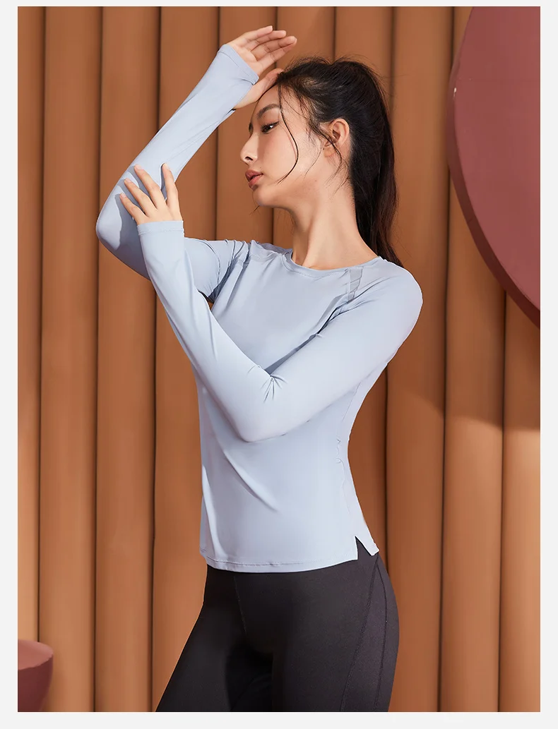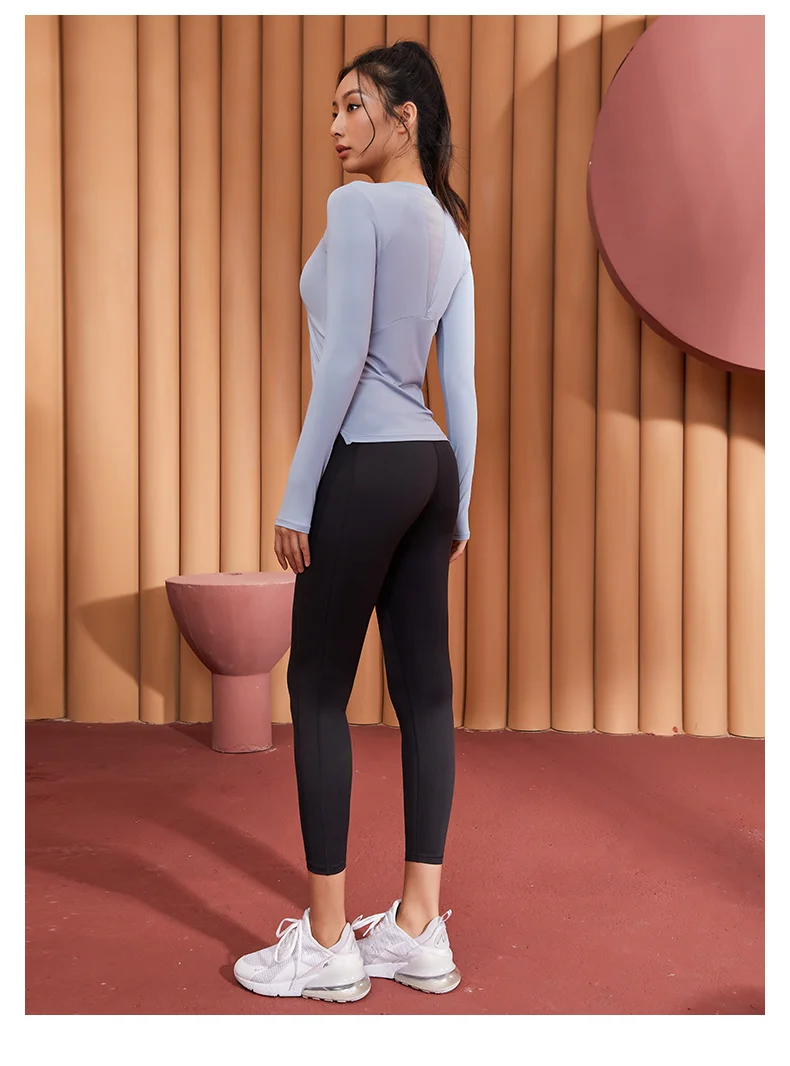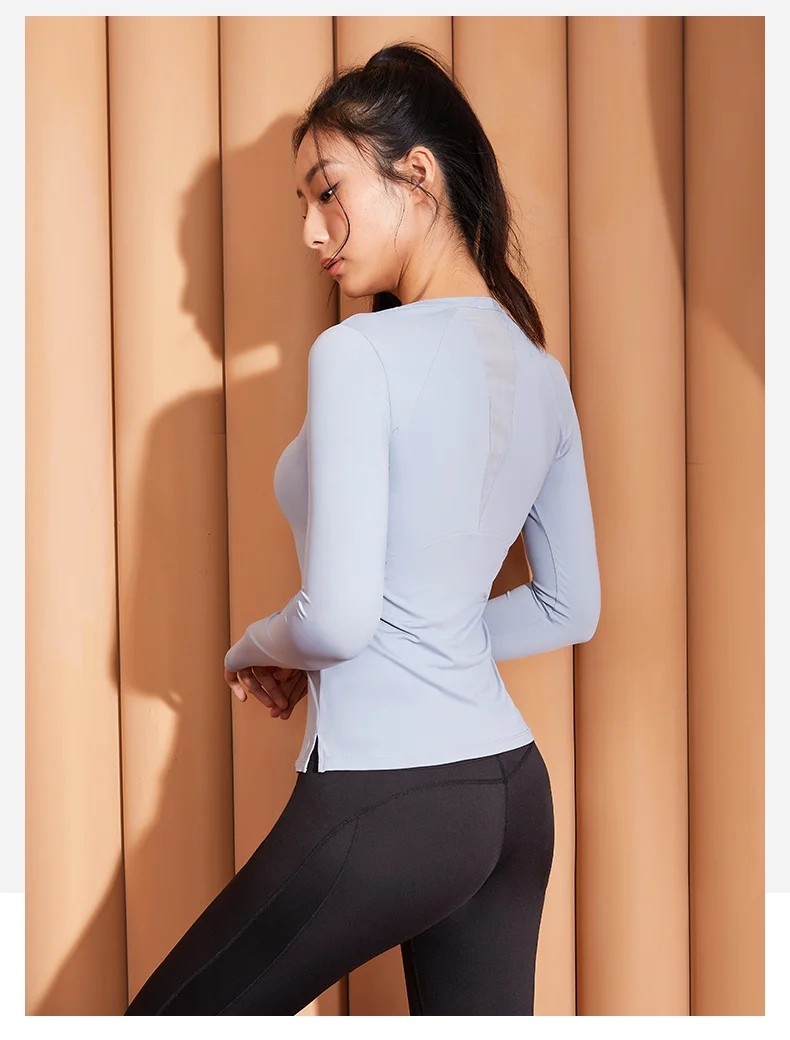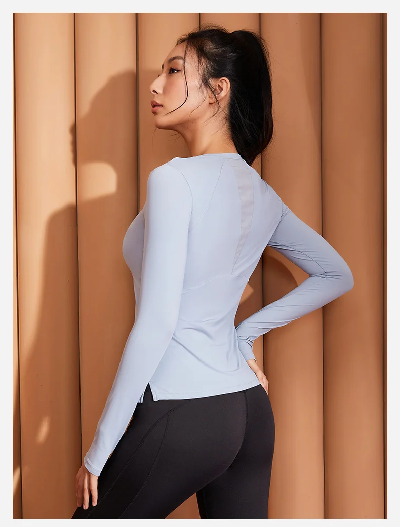Фитнес Женская спортивная рубашка с длинным рукавом для йоги Топ Круглый вырез сетка вышитые блузки тонкая дышащая спортивная одежда куртка для большого пальца