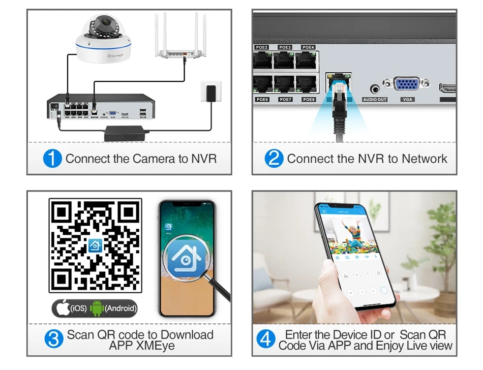 9) Поддержка посещения смартфона, только загрузите приложение «XMeye» на свой телефон