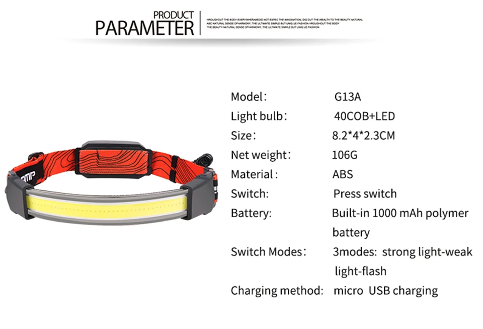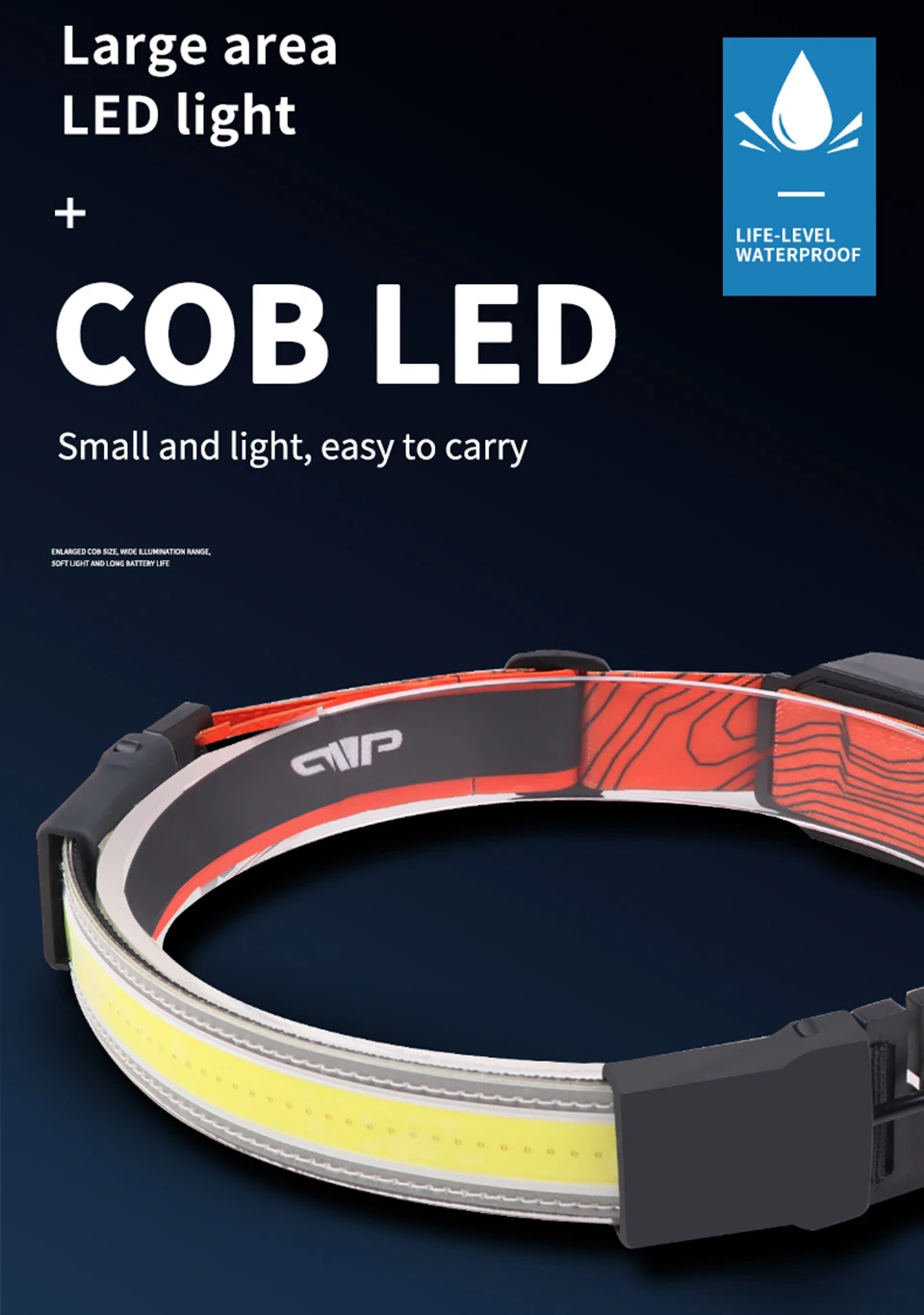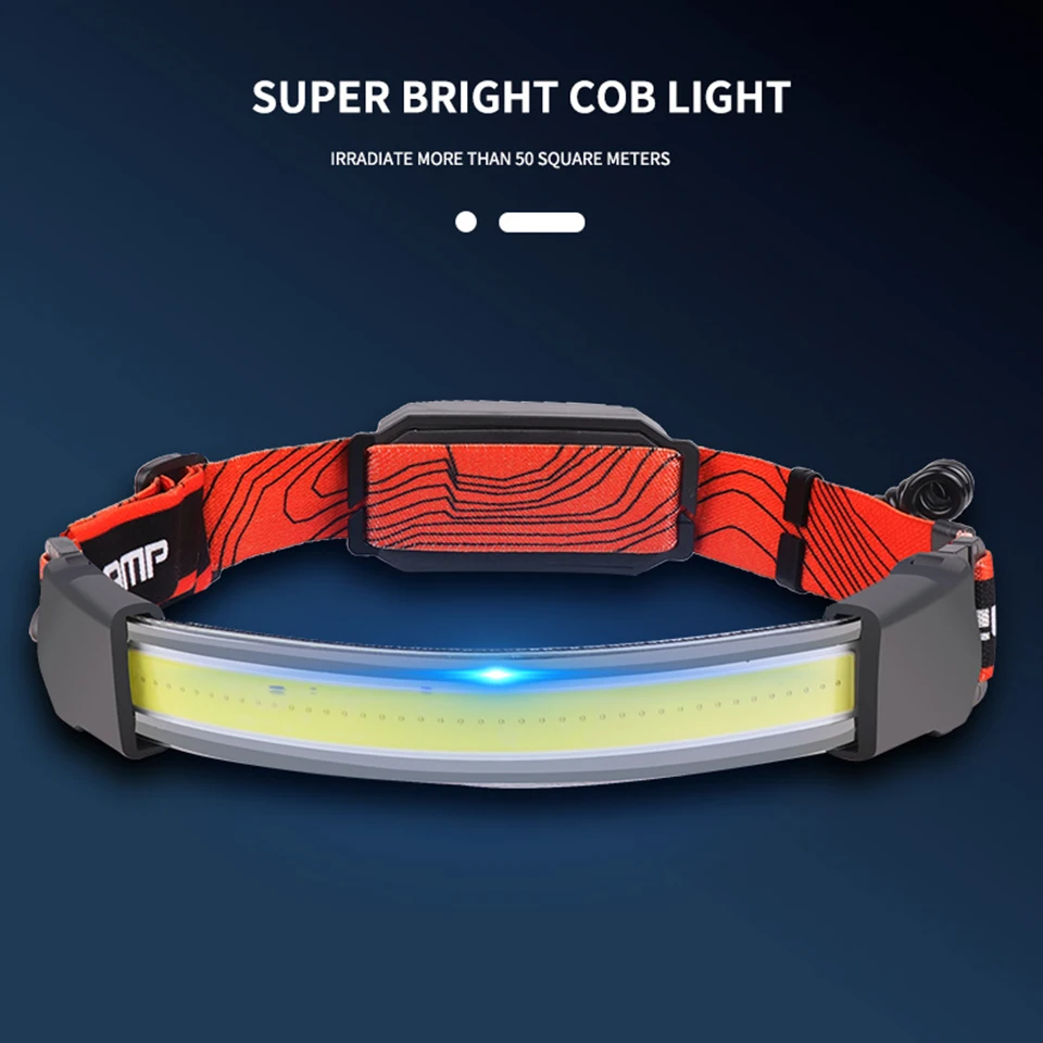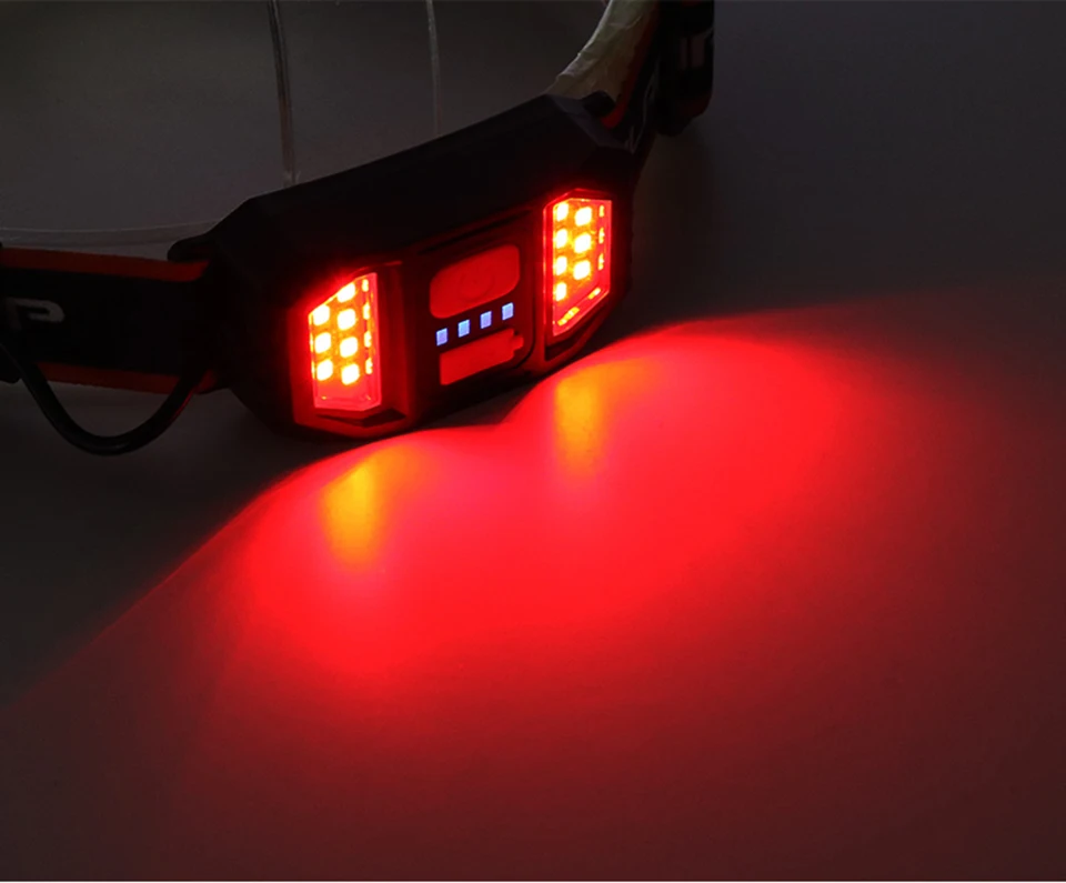 -Супер яркий COB светодиодный налобный фонарь с красной вспышкой