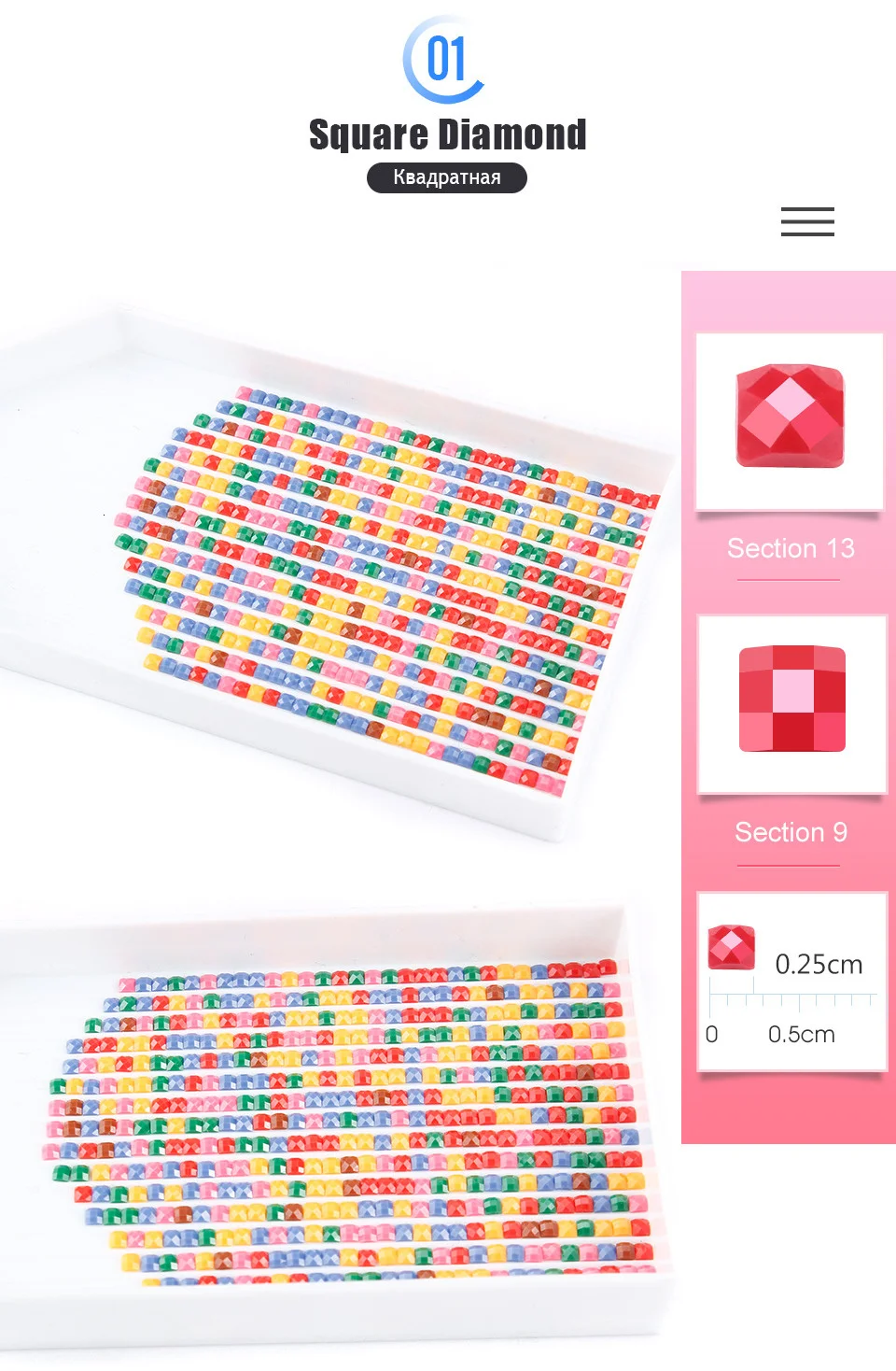Квадратный алмаз имеет 9 секций и 16 секций. Алмазы тесно соединены, бесшовная посадка, стерео чувство сильное.