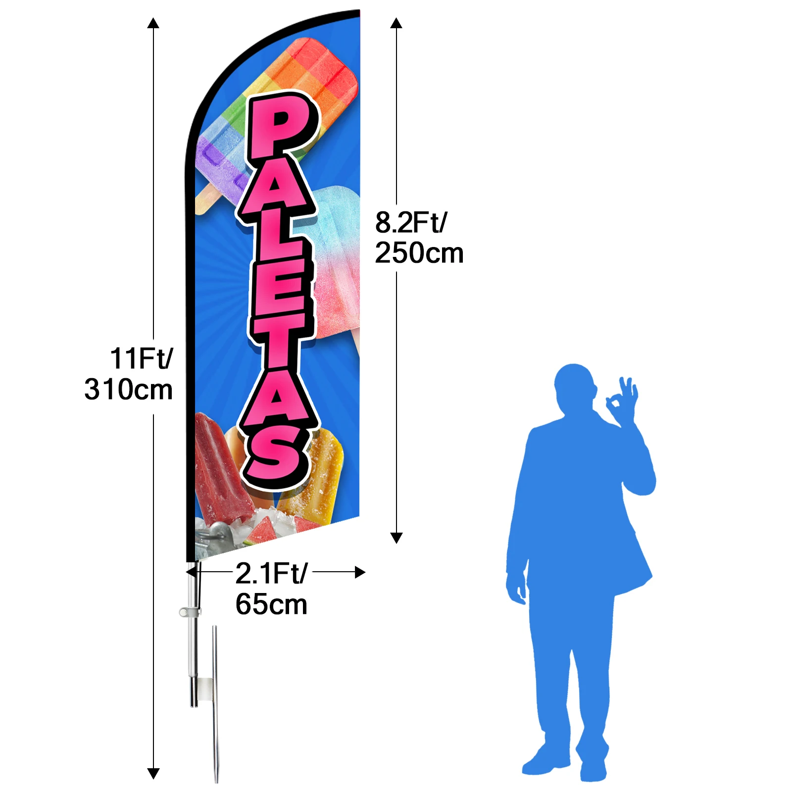 Вы можете знать, что размер флага составляет 8,2 фута✖2,1 фута, а высота полюса-11 футов.