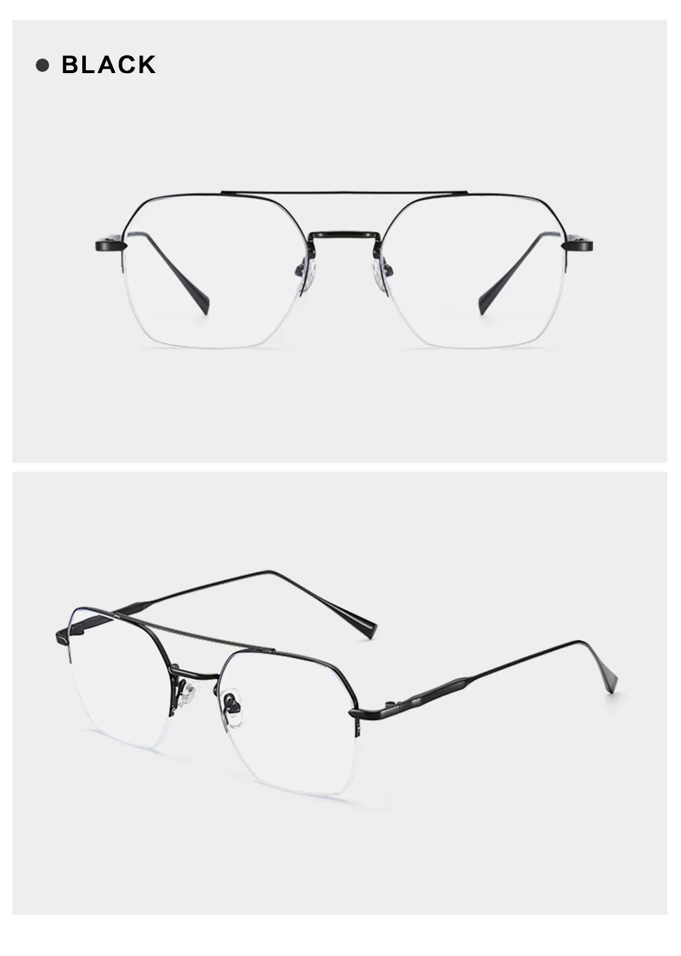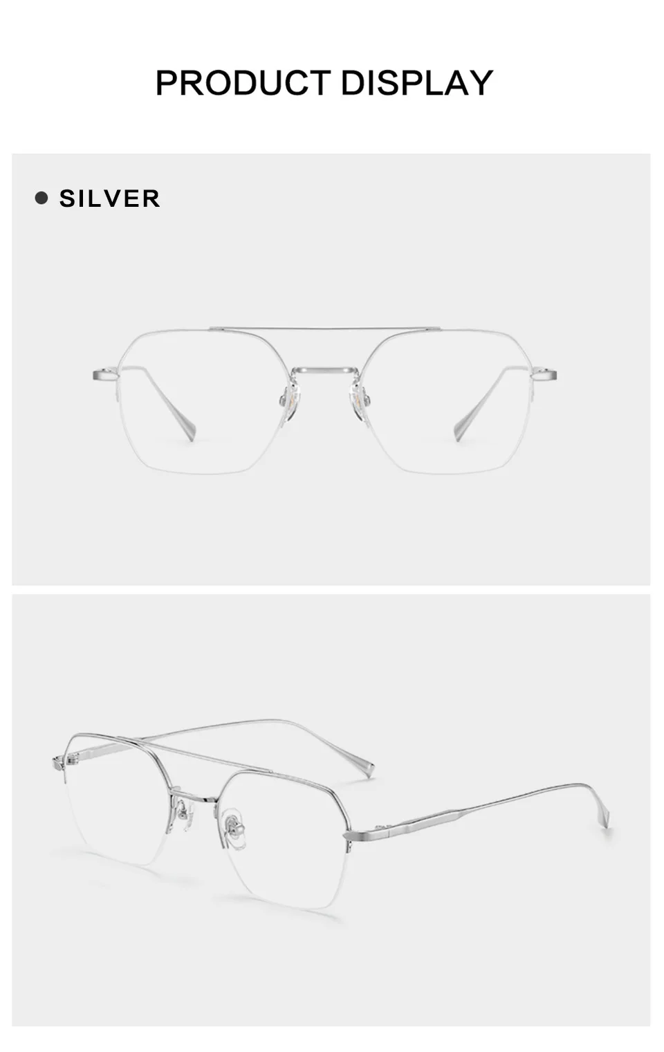 E Titanium мужские и женские оптические очки с двойным лучом, полуободковая оправа, очки с защитой от синего излучения, очки по рецепту из чистого титана для мужчин и женщин, мужские Оптические очки с двойным лучом, полуоправа, очки с защитой от синего излучения, очки по рецепту
