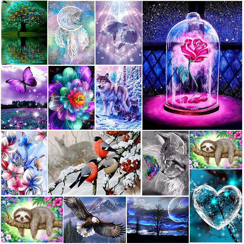 5D Diy Полный Круглый Алмаз Картина животный узор Пейзаж Вышивка крестиком цветы пейзаж мозаика Алмазная вышивка домашний декор